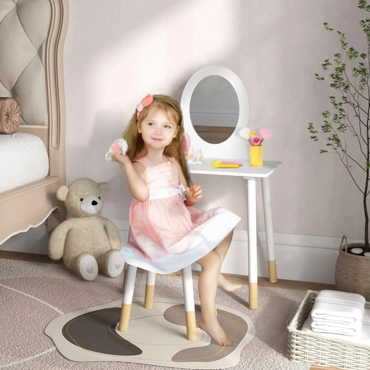 - Este tocador para niñas fabricado con material MDF seguro y resistente