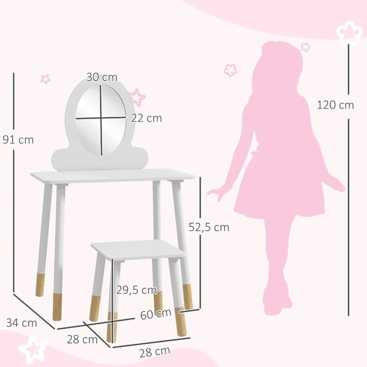 - Patas del tocador/taburete: Ø3,5 cm