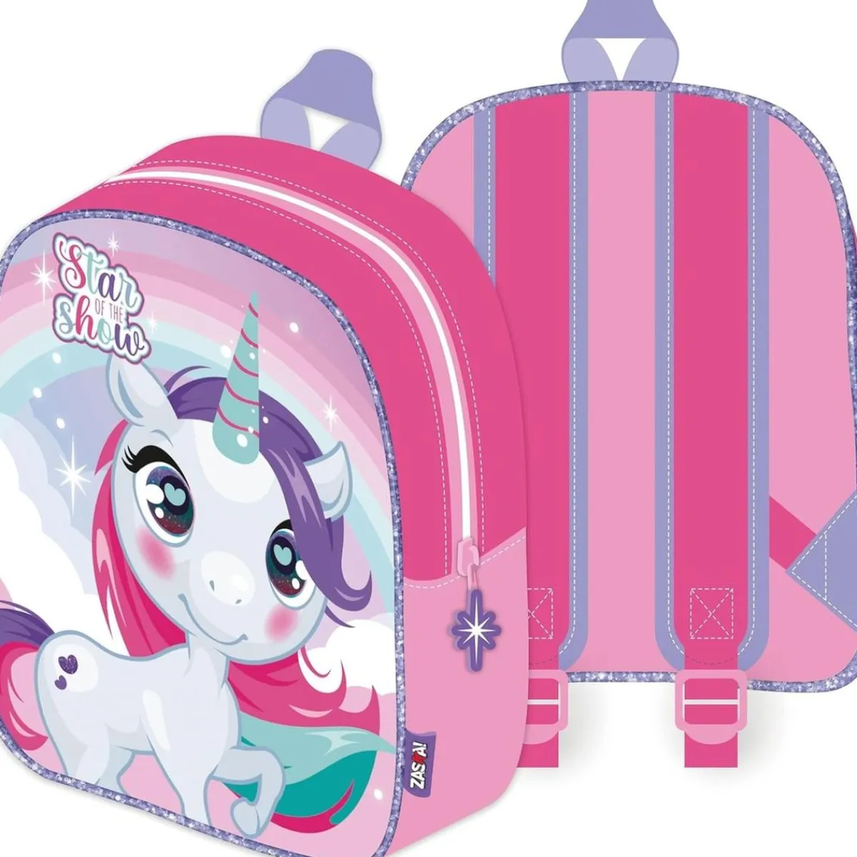 La «Mochila Infantil Unicornio» es perfecta para que los pequeños vayan al colegio o al parvulario con estilo y comodidad. Fabricada en poliéster y PVC, esta mochila está tematizada con adorables unicornios, haciendo que tu hijo lleve consigo a sus personajes favoritos a todas partes. Su tamaño compacto de 24x20x10cm la convierte en una opción ideal para llevar lo esencial sin ser demasiado grande ni pesada.