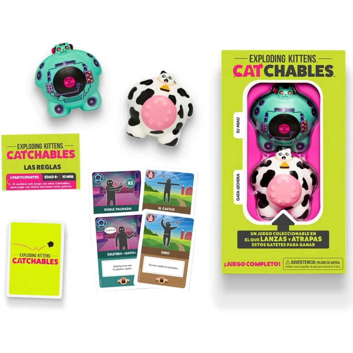 Descubre la diversión con el pack de expansión Exploding Kittens: Catchables 2-Pack. Este juego es ideal para que te diviertas mientras desafías tus habilidades. Tira tu Catchable al aire y compite con tus amigos para atraparlo, pero cuidado, porque tendrás que realizar las acciones de las cartas que tienes en tu mesa antes de volver a atraparlo. ¡Es un reto que pondrá a prueba tu destreza y rapidez! Cuanto más juegues, más estratégica se volverá cada partida, ya que las cartas únicas de cada gatete coleccionable pueden ayudarte a sorprender a tus oponentes. Combina este pack con otros Catchables y organiza partidas emocionantes para disfrutar con un montón de compañeros. La diversión nunca acaba con Exploding Kittens!