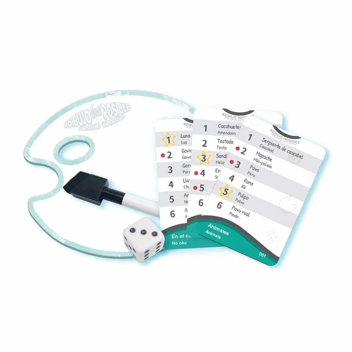 ¿Serás capaz de adivinar el dibujo imposible? ¡Todos en fila! El último saca una tarjeta y lee la categoría en alto, pero shhhh! La palabra no se puede decir.