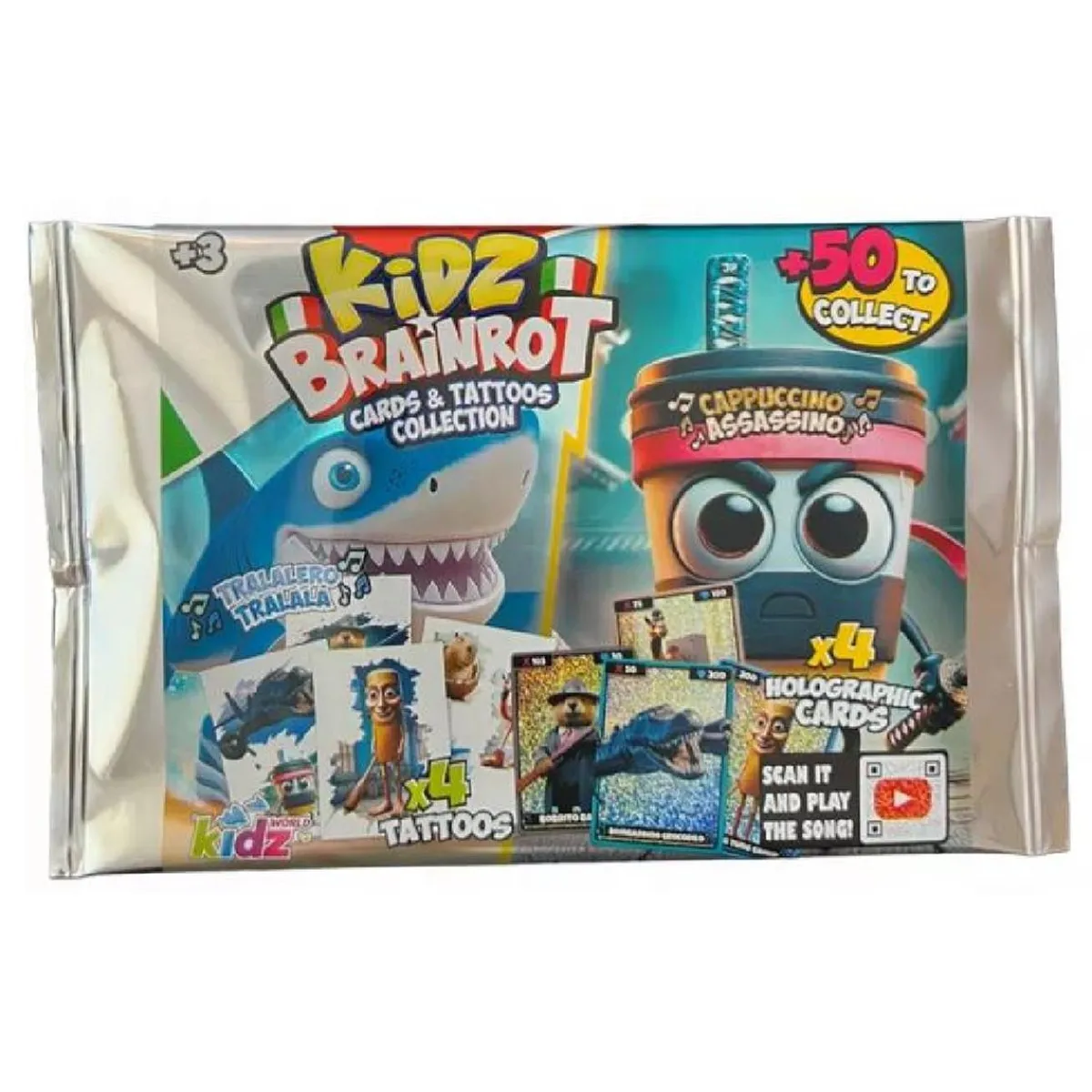 Con el Pack Brainrot Cartas + Tattoos, cada sobre se convierte en una experiencia divertida, coleccionable y totalmente inesperada. ¡Empieza tu colección y disfruta de la locura Brainrot!