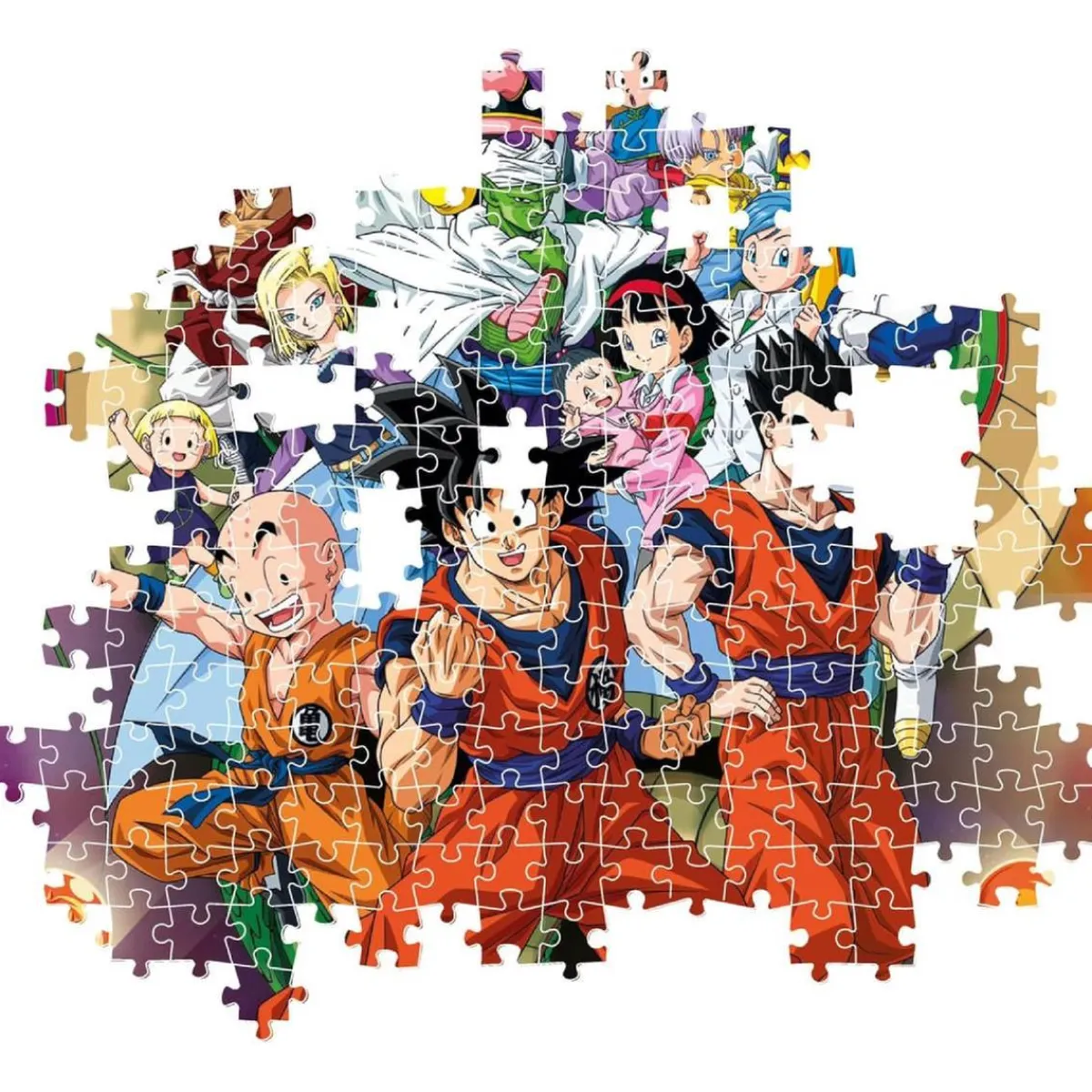 Sumérgete en el universo explosivo de Dragon Ball Super con este espectacular puzzle de 1000 piezas. La ilustración reúne a los personajes más emblemáticos de la serie en una composición llena de energía, acción y colores vibrantes que capturan perfectamente el estilo del anime.