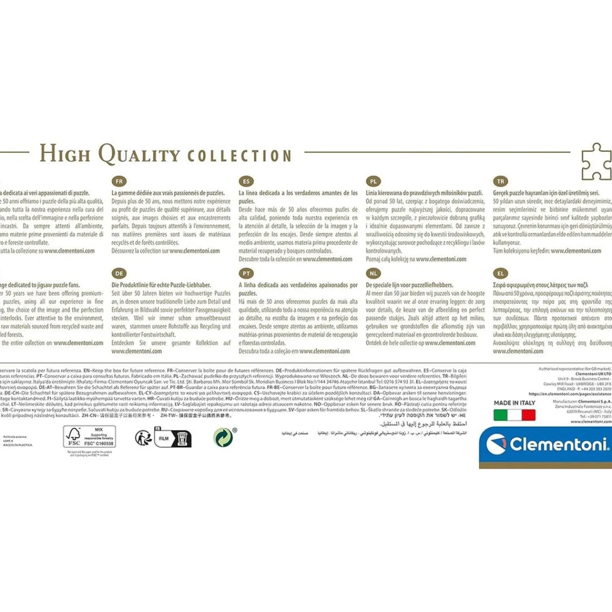 De la mano de Clementoni, este puzzle del juego de calamar se destaca no solo por su alta calidad, sino también por su diseño panorámico. Una vez montado, se transformará en una impresionante imagen de 98 centímetros de ancho y 33 de alto que atraerá todas las miradas. ¡Es el regalo perfecto para todos los seguidores del enigmático mundo del Juego del Calamar!
