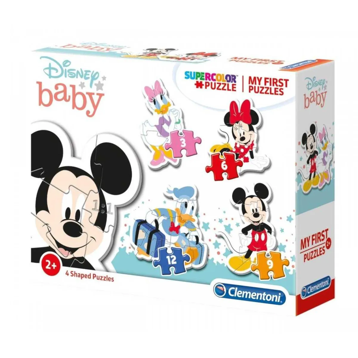 - Pack de cuatro puzzles de siluetas de Mickey y sus amigos de dificultad progresiva, formados por piezas de gran tamaño gruesas y resistentes.