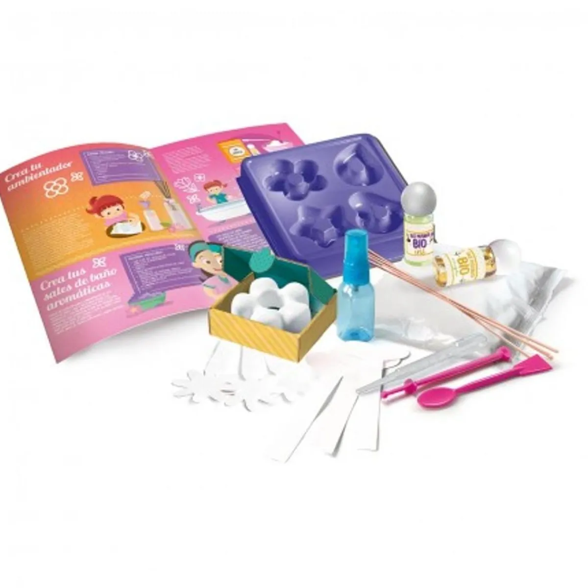 Este kit te lleva más allá del simple hecho de oler bien. Te proporciona todo lo que necesitas para experimentar con la ciencia cosmética y explorar cómo los diferentes aromas pueden combinarse para crear algo maravilloso. Desde tu propia casa puedes hacer fragancias y tizas aromáticas utilizando los ingredientes naturales y orgánicos proporcionados. Pensado para estimular la creatividad y tener una experiencia segura, atractiva y lúdica.