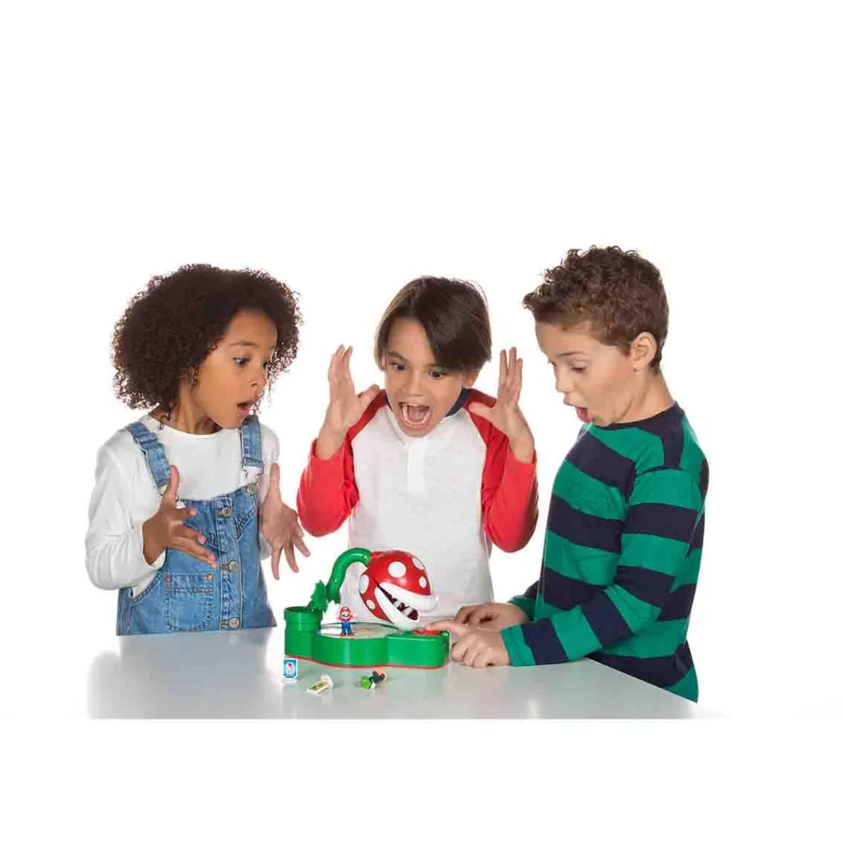 ¡Ten cuidado! Porque si tiras el dado y al avanzar en el tablero te toca pulsar el botón, ¡la Piranha Plant se lanzará a por ti!