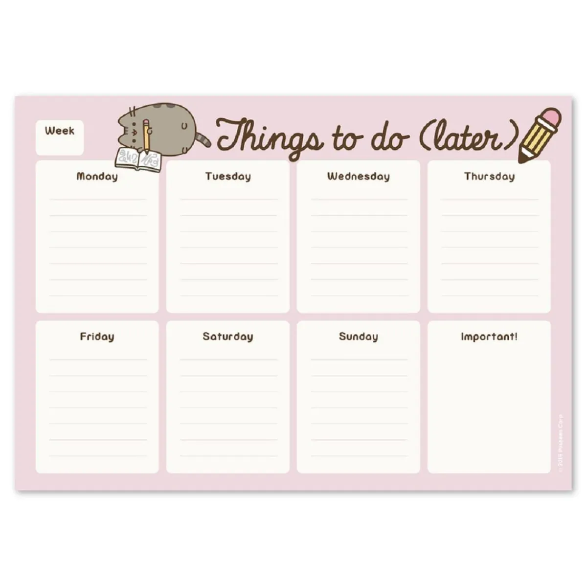 Pusheen – Bloc planificador semanal A4, un planificador A4 de 54 hojas con espacio para planificar cada día de la semana y hacer anotaciones.