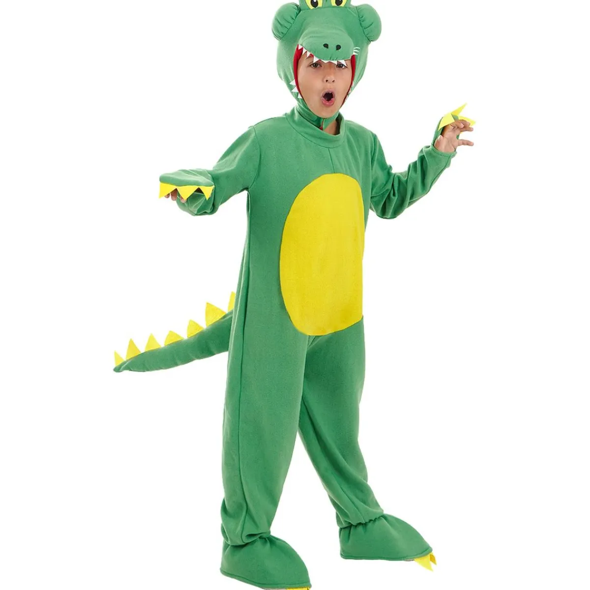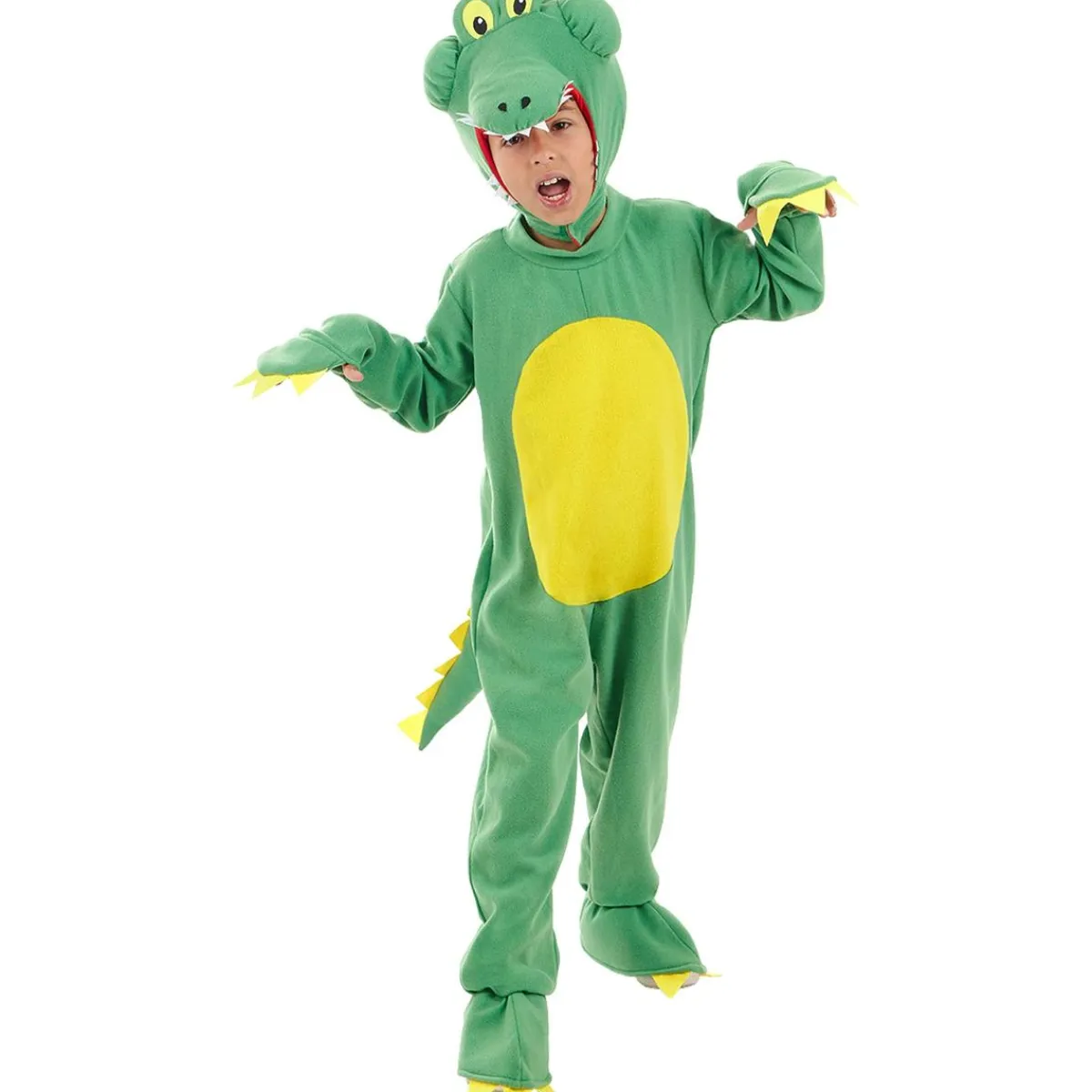 Este disfraz de cocodrilo para niño en talla 10-12 años es ideal para quienes buscan un look divertido y original. Incluye mono de cuerpo completo y pieza para la cabeza en forma de hocico, creando un conjunto muy realista y simpático. Perfecto para carnaval, fiestas escolares o representaciones teatrales.
