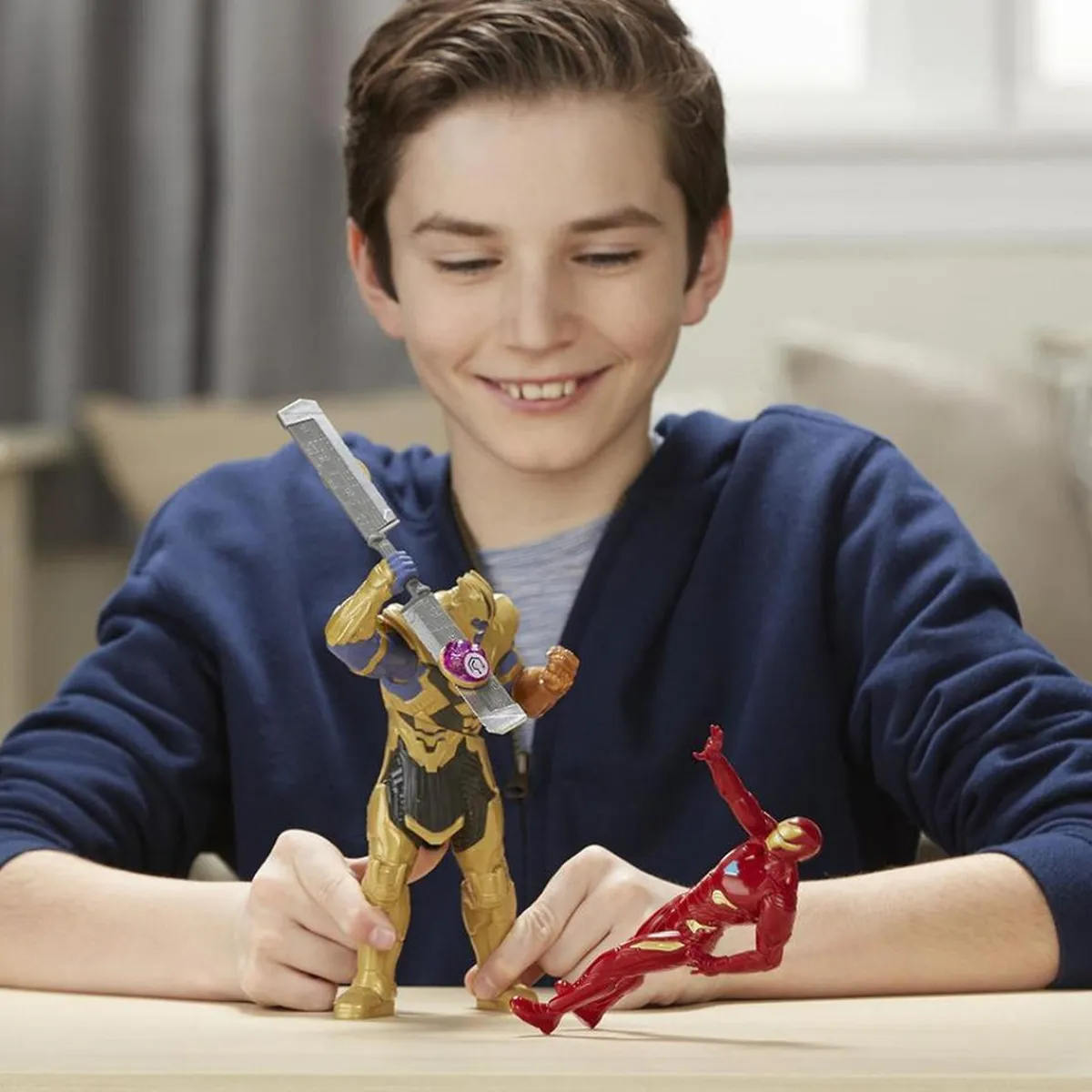 Los Vengadores – Iron Man vs Thanos, un playset que incluye 2 figuras (Iron Man y Thanos), 2 piedras Infinity y accesorio. ¡Cuando Thanos empuña el Infinity Gauntlet, Iron Man se prepara para desafiar su poder y tratar de salvar el universo! ¡Imagina unirte a la misión de recoger las Piedras Infinitas con el Juego de Batalla de Iron Man vs. Thanos! Prepara la figura de Iron Man para luchar contra Thanos, equipado con su brazo letal, guante luminoso, un accesorio de batalla con 2 Piedras Infinito y sonidos y frases inspirados en las películas. ¡Colecciona todas las figuras de Avengers: Infinity War de 15 cm para recoger todas las Piedras Infinitas! (Las Piedras Infinitas se venden con las figuras de 15 cm Avengers: Infinity War. Cada una se vende por separado. Sujeto a disponibilidad). ¡Compatible con la máscara HeroVision! (Mascara NO incluida). Funciona con 2 pilas AAA (incluidas). Edad recomendada +4 años.