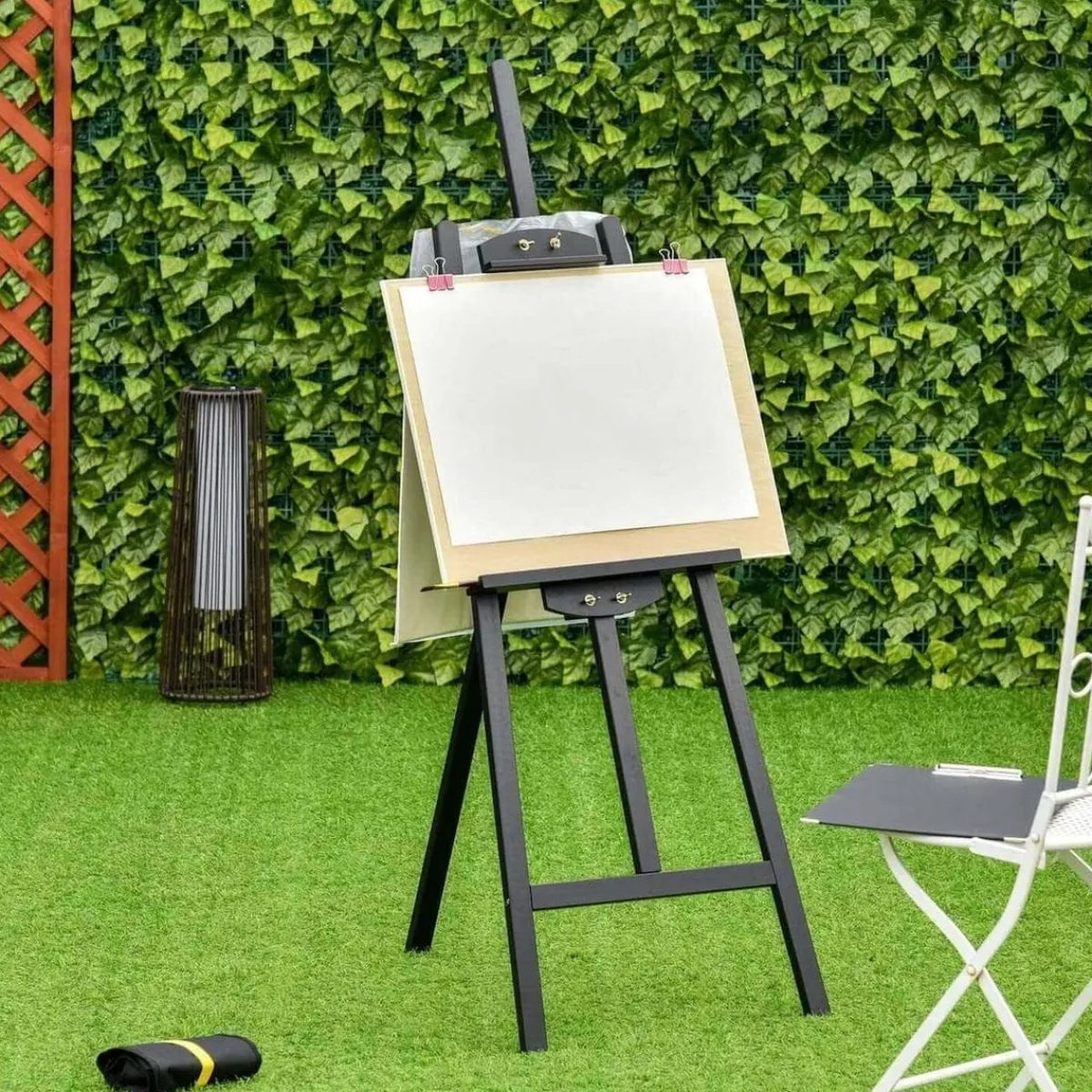 Homcom – Caballete de madera con trípode Negro. ¡Saca el artista que hay en ti! Da rienda suelta a tu creatividad con este caballete profesional de Homcom. Este soporte es comodísimo, ya que también se puede ajustar el ángulo de inclinación hasta 90°. Su diseño portátil y fácil de usar es perfecto para pintar en casa o para salir a pintar a la naturaleza. Es perfecto para principiantes, artistas, aficionados. Además, también lo puedes usar como soporte bonito y original para exponer tus cuadros. Su diseño en forma de trípode ofrece una gran estabilidad.