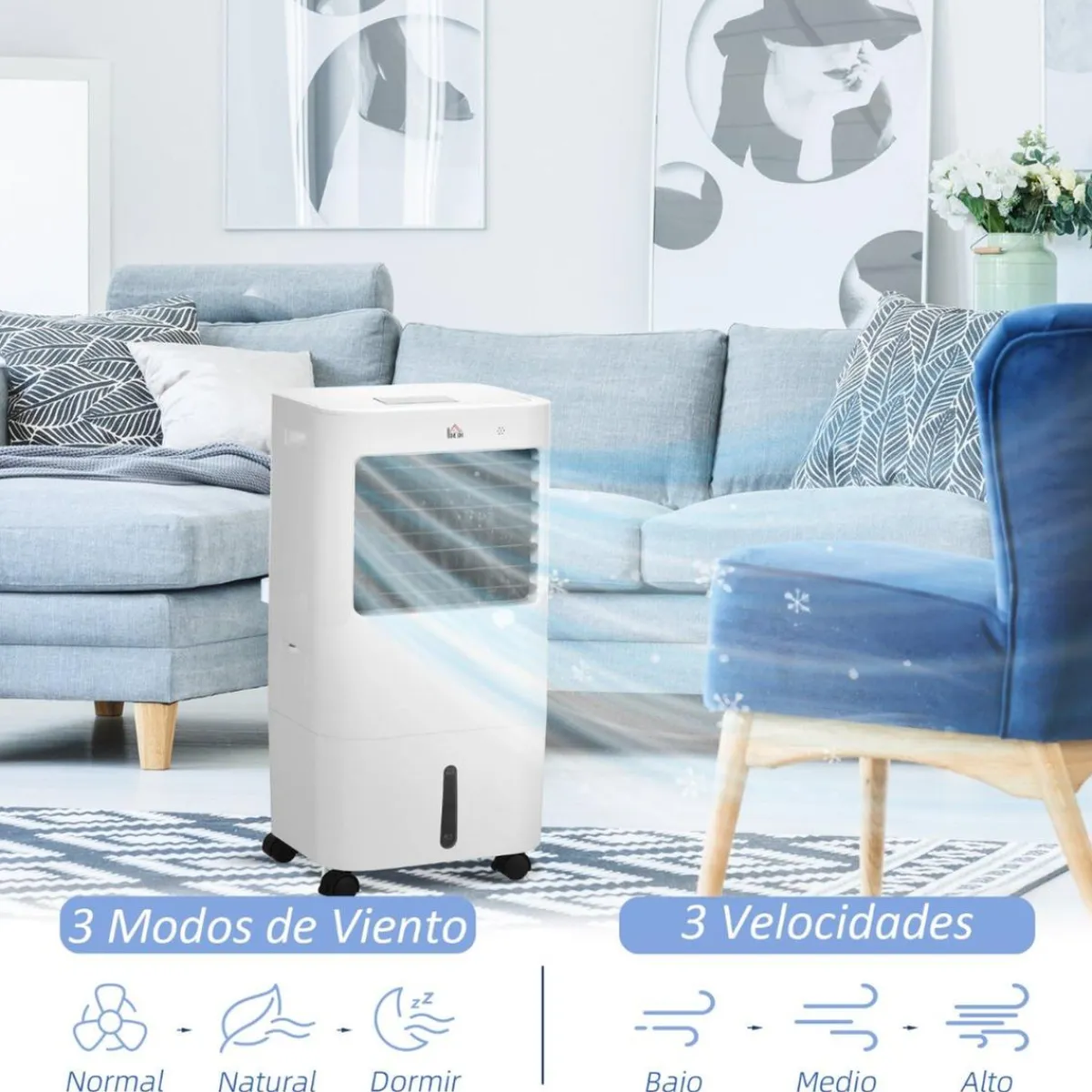 Homcom – Enfriador de Aire Portátil 15L, un aire acondicionado con un tanque de agua de 15L para un tiempo de funcionamiento de hasta 10 horas.