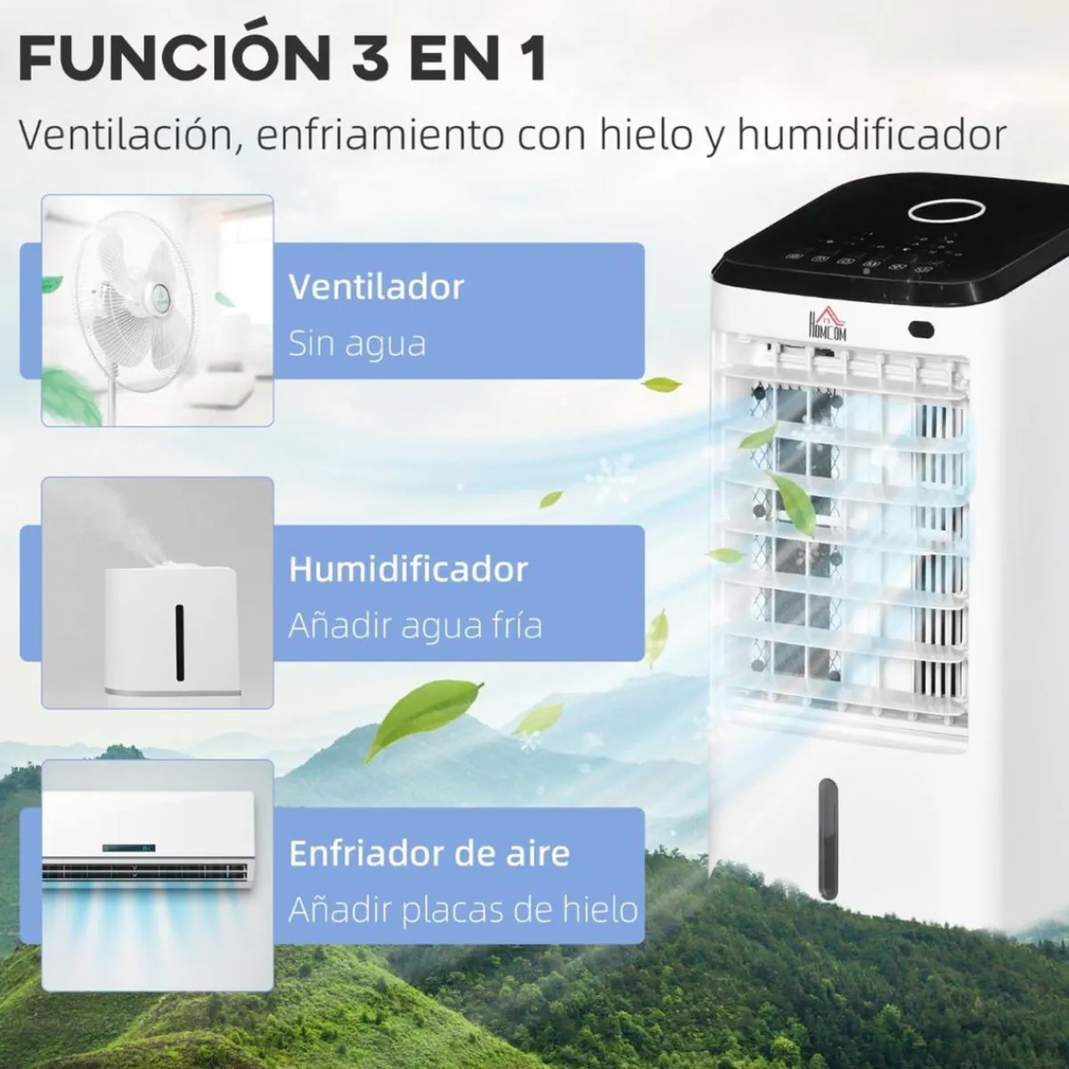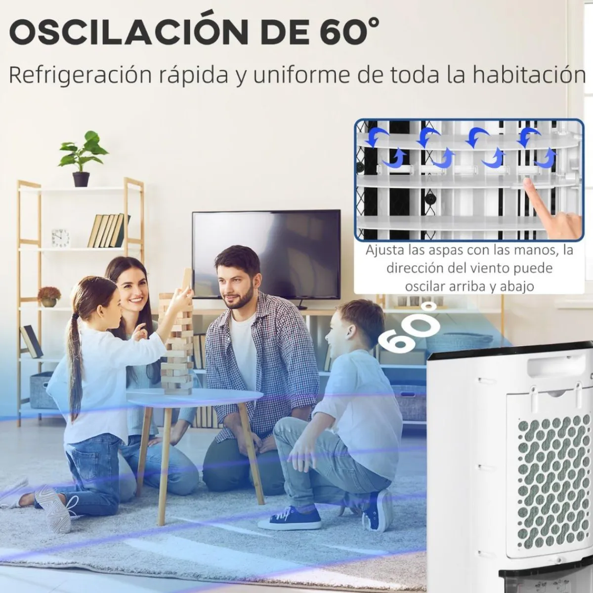 Homcom – Enfriador de Aire Portátil 3,5L, dispone de 3 modos de funcionamiento, ventilador, refrigeración con hielo y humidificador. Este climatizador tiene una función de oscilación de 60° para proporcionar un flujo de aire uniforme.