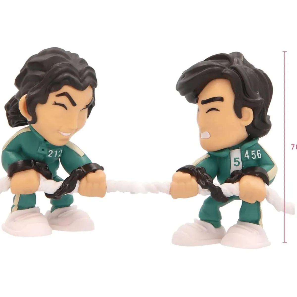 Desafía a tus oponentes tirando de la cuerda en el tira y afloja, intenta no caer sobre el pasaje de cristal y gana Squid Game. En cada caja encontrarás uno de los juegos completos. Recrea la escena con los 2 personajes exclusivos y el minijuego de cartón, perfecto para exhibir. Luego juega, tira los dados y mueve los personajes. ¿Quién ganará?