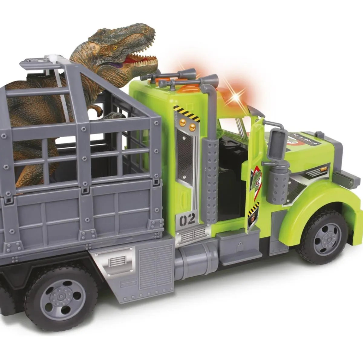 Con este fantástico camión con luces y sonidos salvarás al mundo de los dinosaurios. Busca al aterrador T-Rex, atrápalo y enciérralo en la jaula. ¡Y por favor, no lo dejes escapar!
