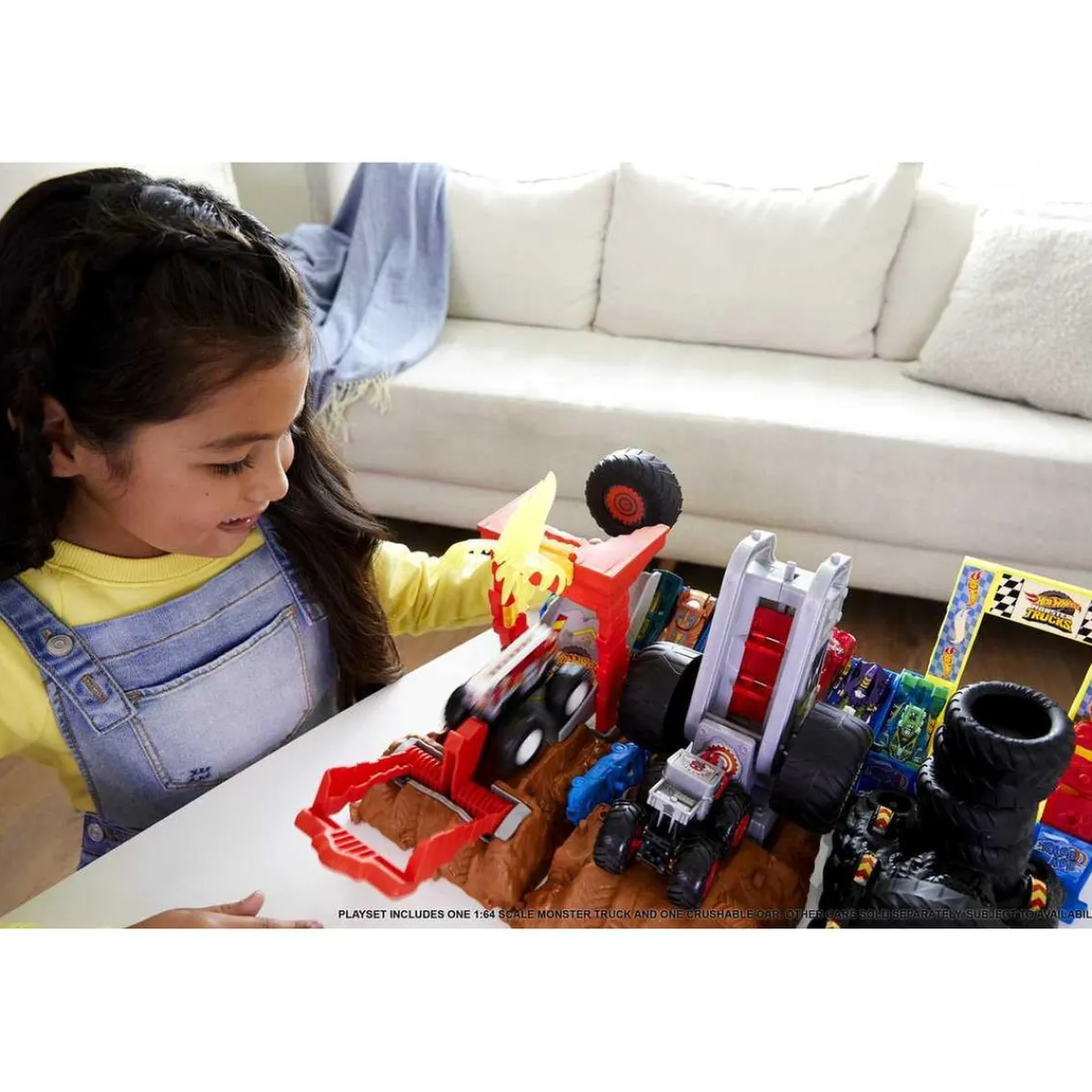 A los niños les encantarán los desafíos de DESTRUCCIÓN que les ofrece Hot Wheels Monster Trucks Arena Smashers playset. Pueden sentir el emocionante poder de chocar y aplastar y sumergirse en un mundo lleno de diversión y acción con su propio Monster Truck. Estos juegos presentan diferentes desafíos para que cada experiencia sea especial y adaptada al personaje del Monster Truck incluido.