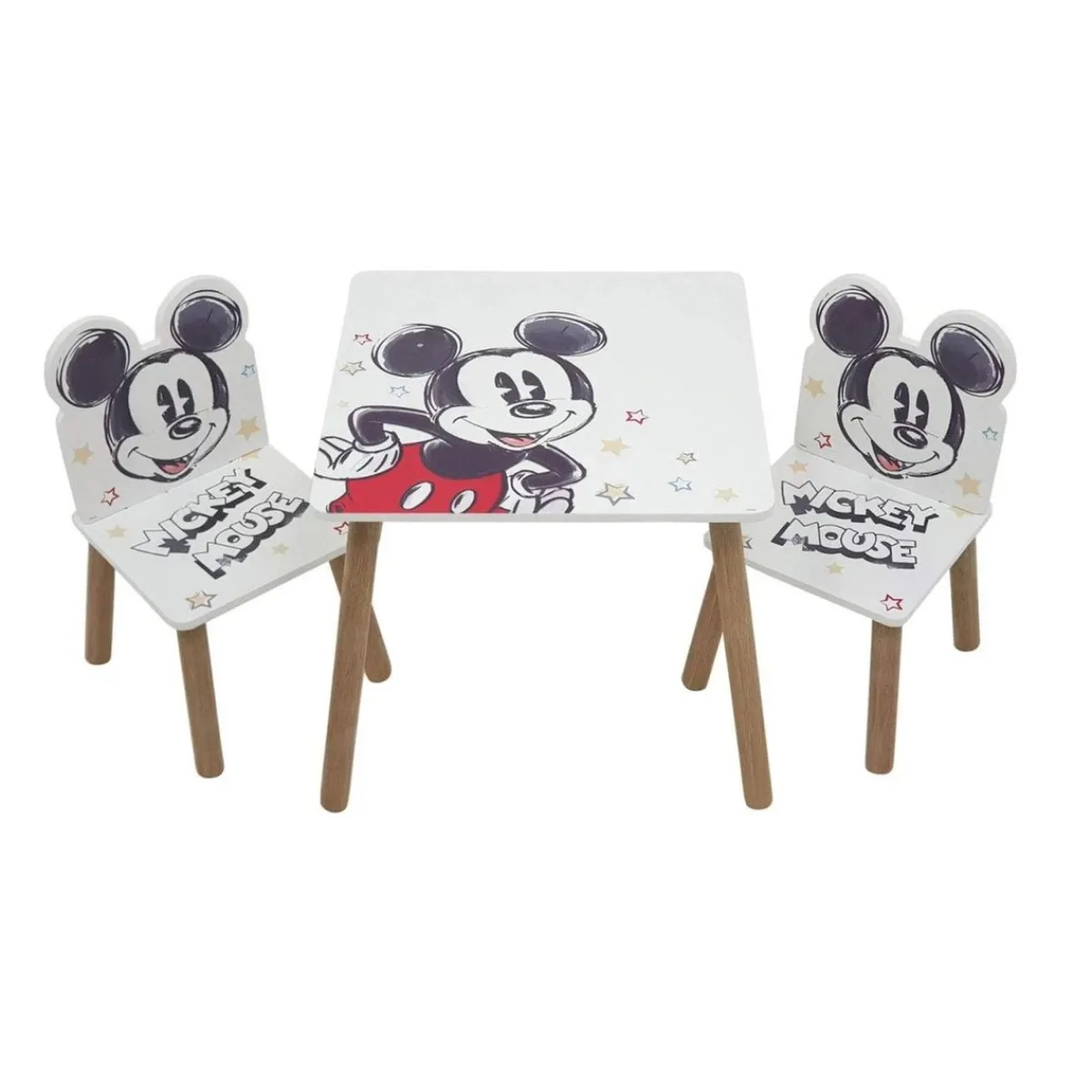 Disney – Mickey Mouse – Conjunto de Mesa Cuadrada y Dos Sillas de Madera Mickey Classic ㅤ
