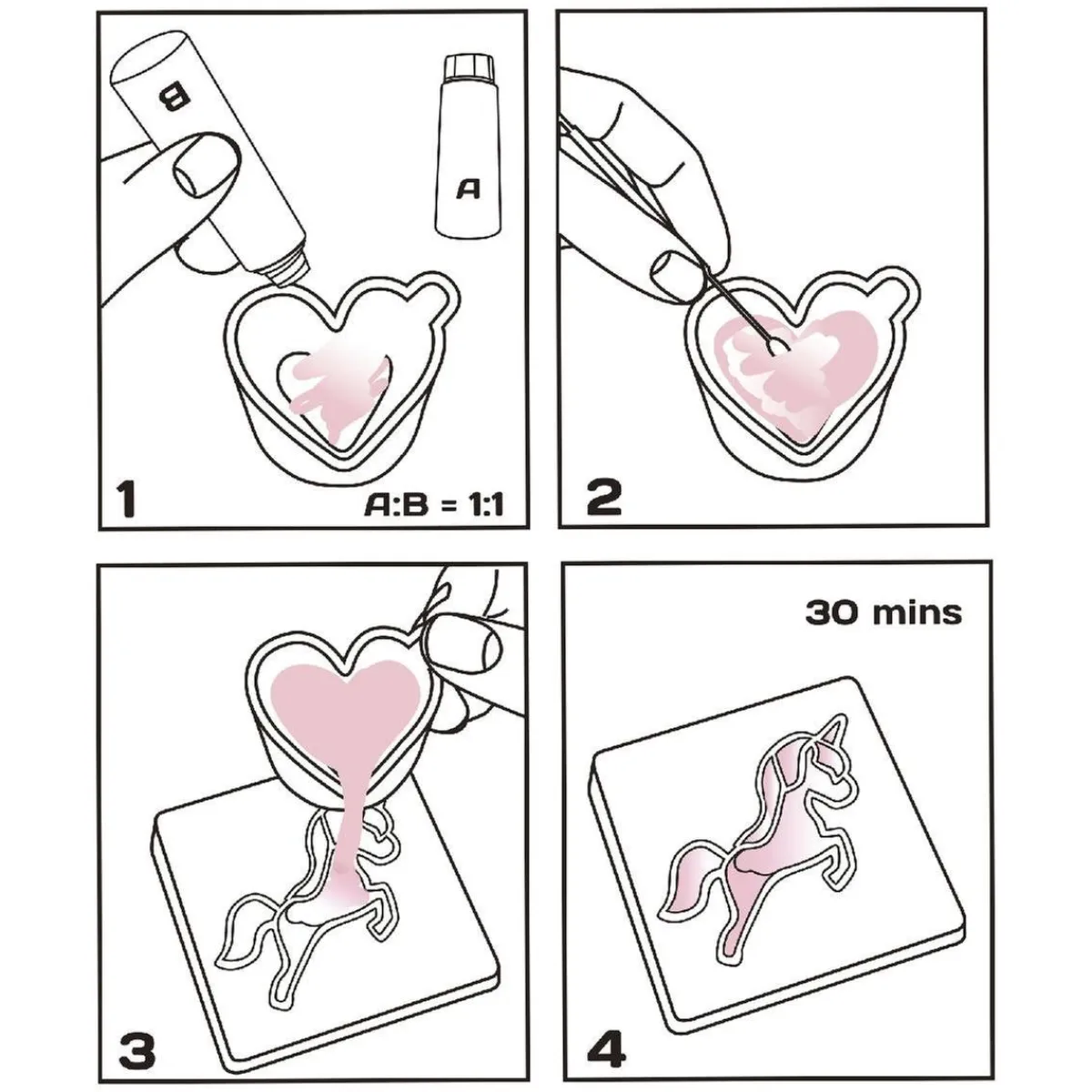 - Mezclar los líquidos A+B en el recipiente adecuado,