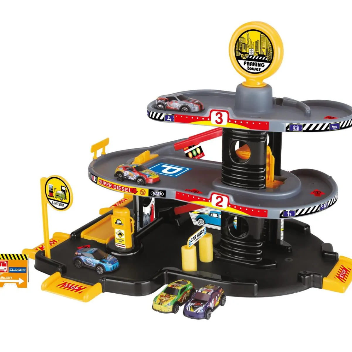 Motor & Co – Parking Garaje 3 niveles. ¡3 pisos de diversión pura! ¡Corre con tus coches por las rampas y el ascensor!