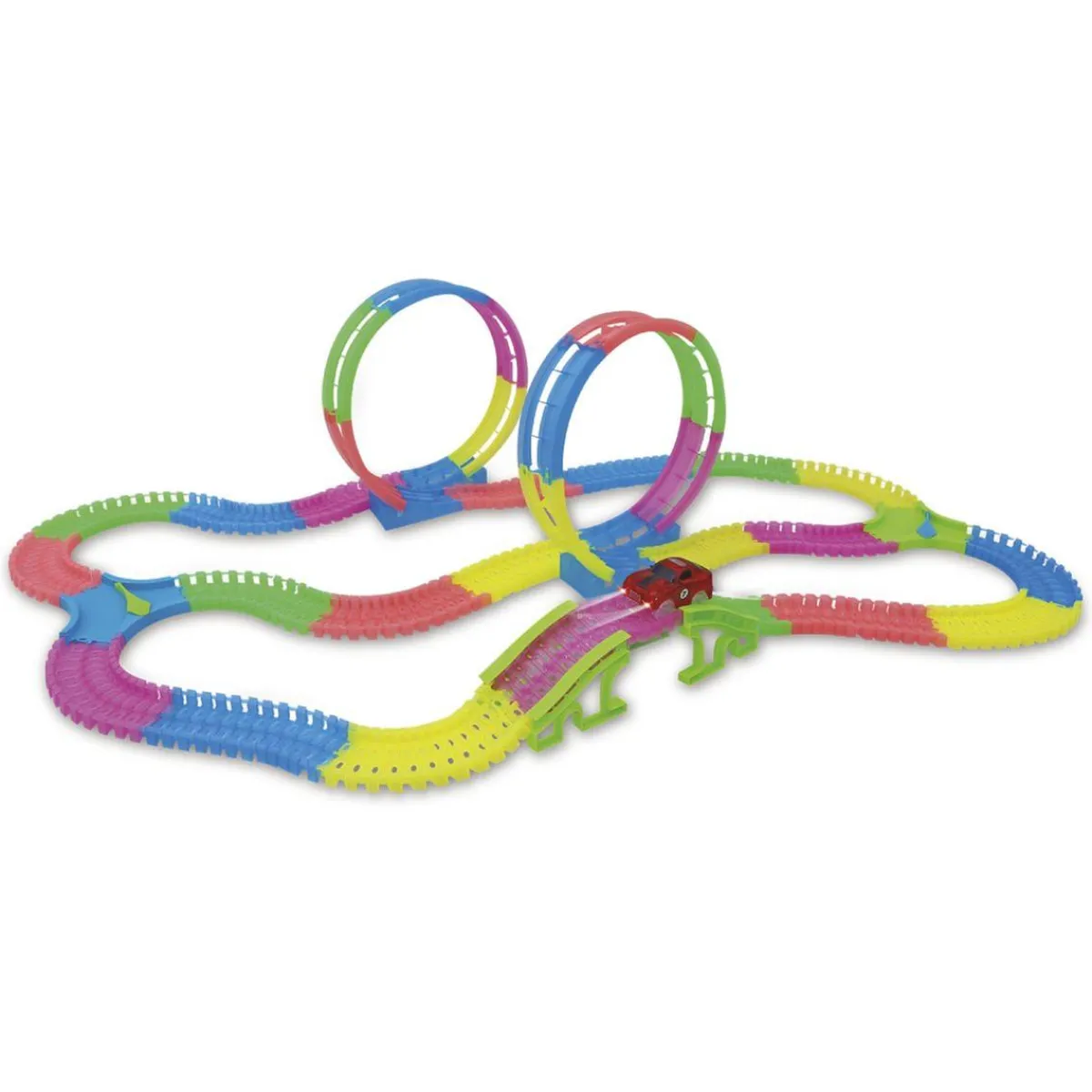 ¿Sueñas con emociones fuertes? ¡La pista modular luminosa para coches de 366 piezas está hecha para ti!