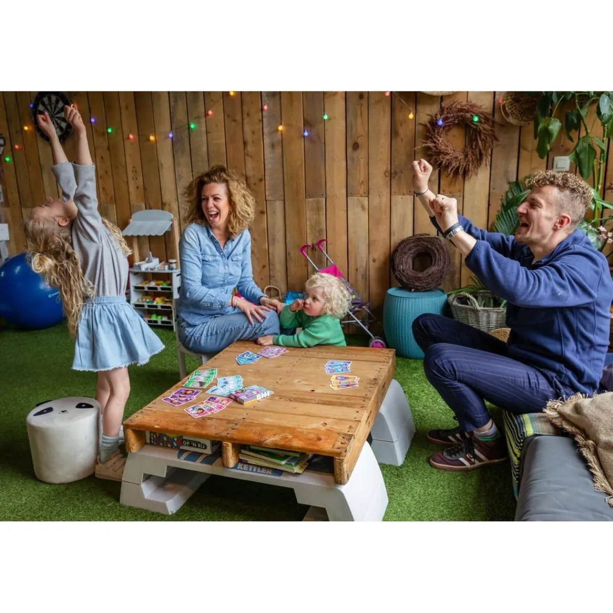 - Juego de acción: en este juego tendrás que deshacerte de tus cartas siguiendo el mismo palo, cifra o símbolo que la carta del mazo central.