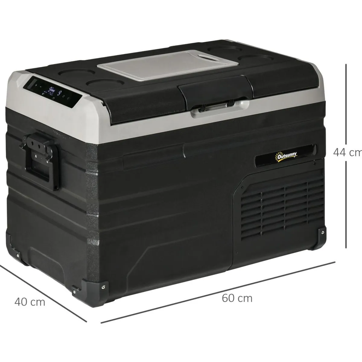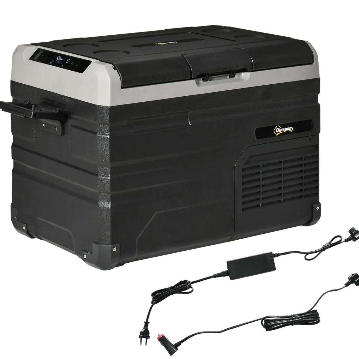 Outsunny – Nevera congelador portatil 35L Negro, al poder ajustar su temperatura mínima hasta -20°C esta nevera portátil, además de enfriar, también permite mantener tus alimentos congelados. Tiene una capacidad de 35 litros dividida en 2 zonas, que te permitirán enfriar o congelar gran variedad de bebidas o alimentos. También incluye una tabla de cortar y un abrebotellas.
