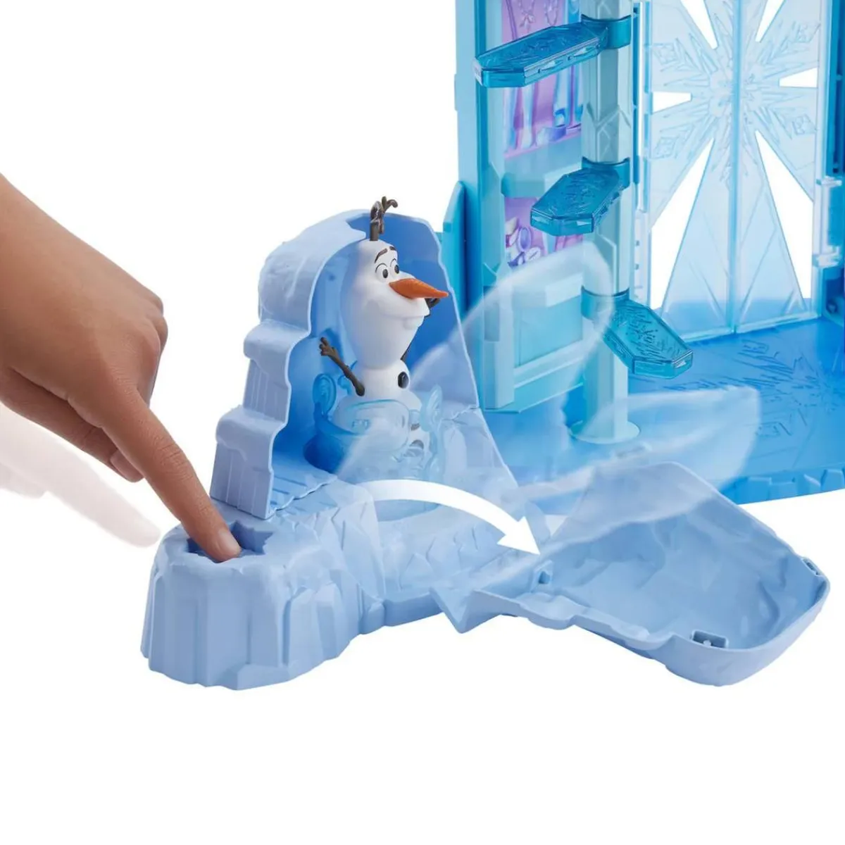 - Espacios interactivos: Incluye varias zonas de juego, como un tobogán desplegable y un trineo para deslizarse, una escalera de hielo que lleva al balcón y una habitación secreta para los tesoros de Olaf.