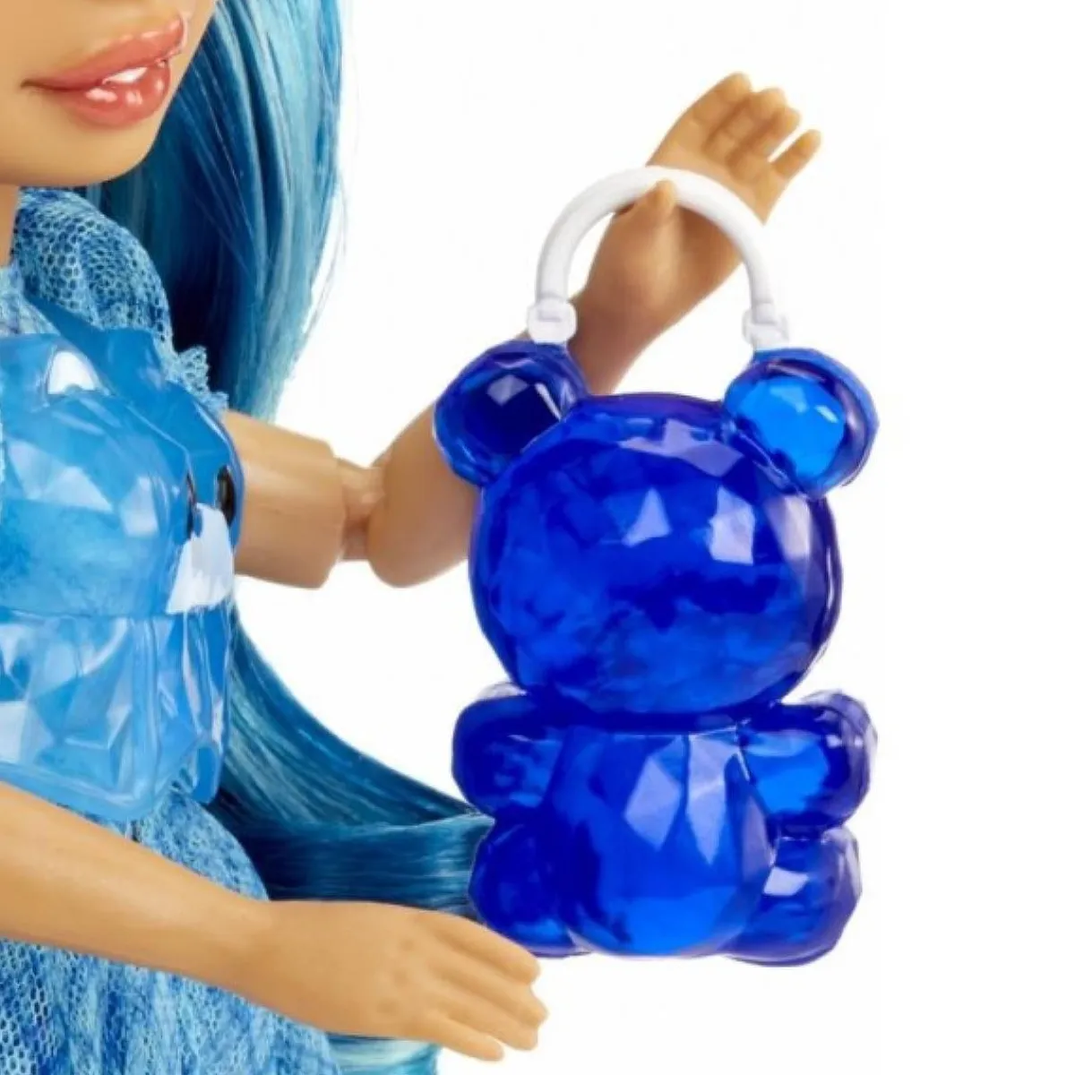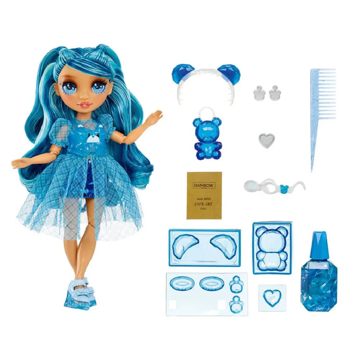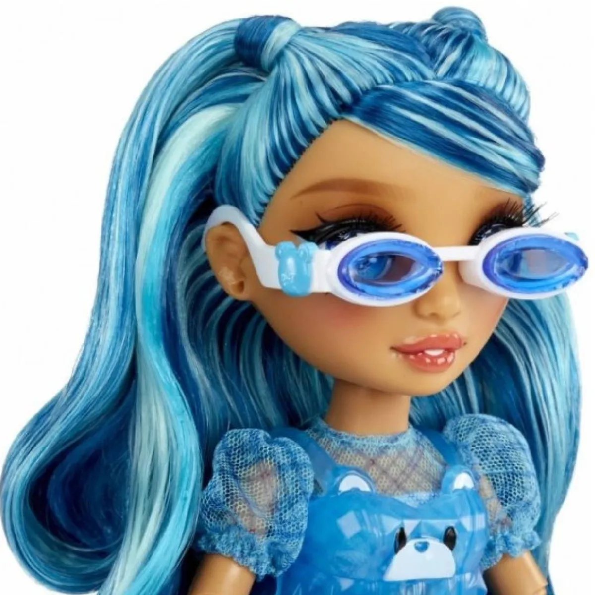 Skyler destaca por su indumentaria multicolor y su largo cabello azul lleno de brillo, que invita a los niños a explorar su creatividad. Los pequeños podrán personalizar los accesorios de su muñeca, creando piezas únicas como gafas de sol, bolsos o diademas gracias al kit incluido que facilita esta actividad.