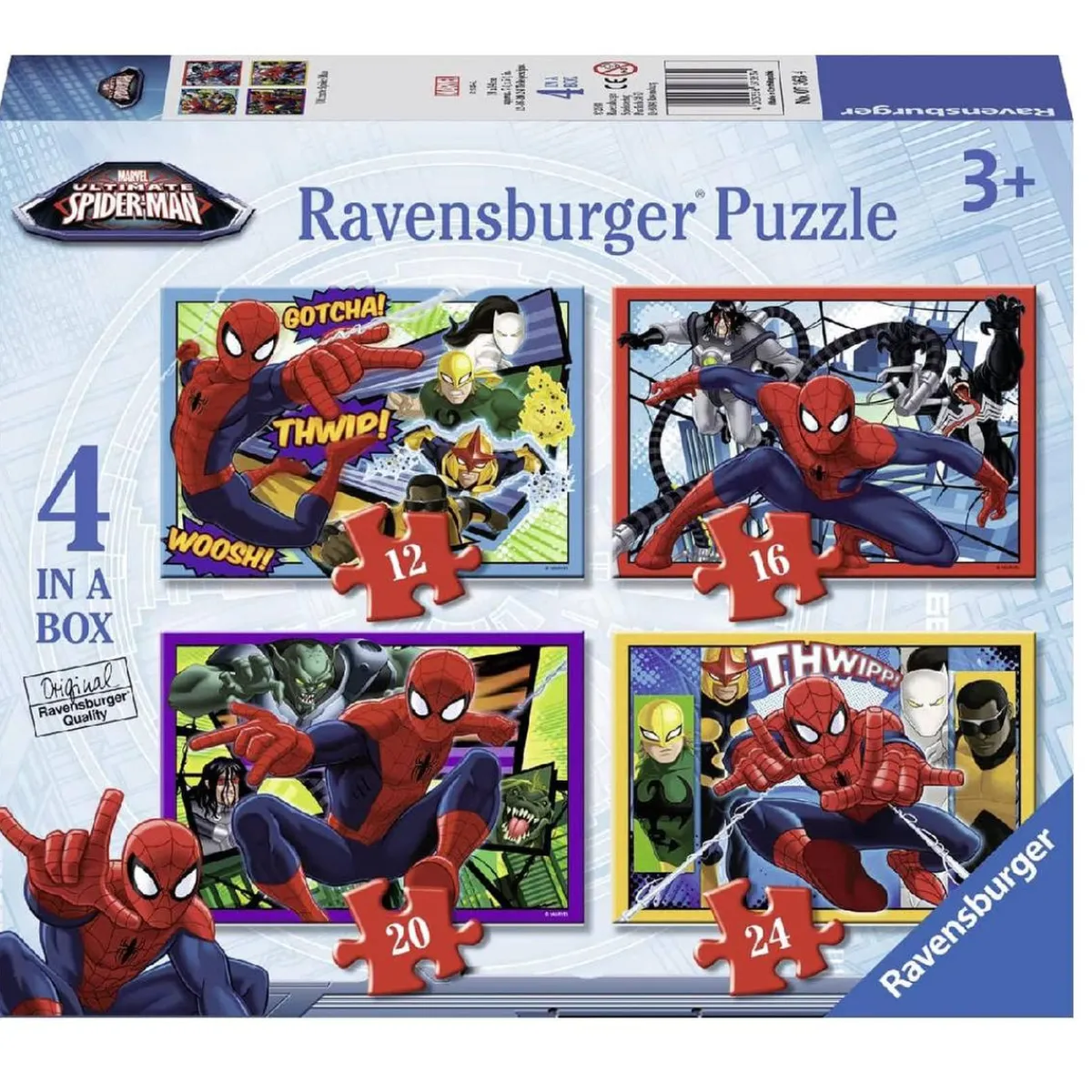 Ravensburger – Spider-man – Pack 4 puzzles progresivos, 4 puzzles de 12, 16, 20 y 24 piezas con ilustraciones de Spider-man para niños en edad preescolar.