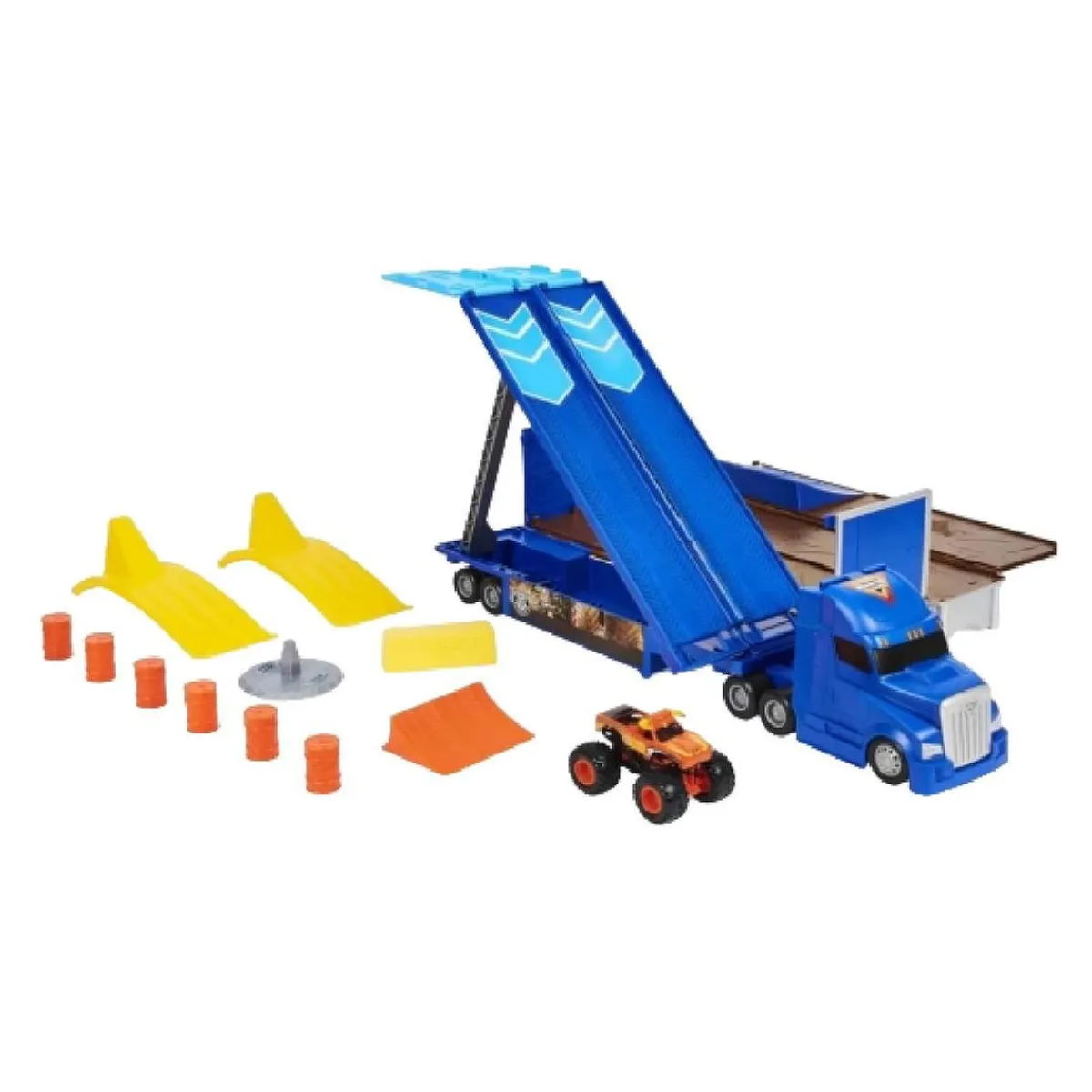 ¡Tu escenario de saltos Monster Trucks! ¡Coge a El Toro Loco y lánzalo por la rampa!