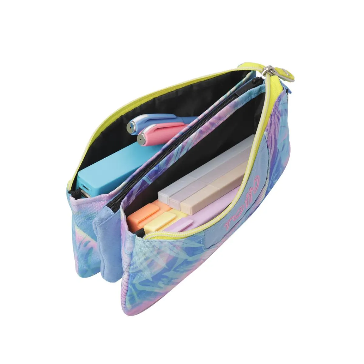 Descubre el estuche escolar Tablero Prisma, la elección perfecta para mantener tu material escolar organizado y con un toque moderno. Su diseño combina colores geométricos y vibrantes, aportando frescura y estilo a tus días de clase. Dispone de tres bolsillos amplios que permiten clasificar lápices, bolígrafos, rotuladores y pequeños accesorios, manteniéndolos siempre a mano. Está fabricado en material RPET, proveniente de botellas plásticas recicladas, contribuyendo así al cuidado del medio ambiente. Su tejido repelente a líquidos protege el contenido frente a derrames accidentales, mientras que sus organizadores elásticos mantienen todo en su lugar. Incluye un práctico tirador ergonómico para abrirlo con facilidad y luce un elegante logo bordado que aporta un toque distintivo. ¡Haz que tu día a día escolar sea más sostenible y lleno de color con el estuche Tablero Prisma!