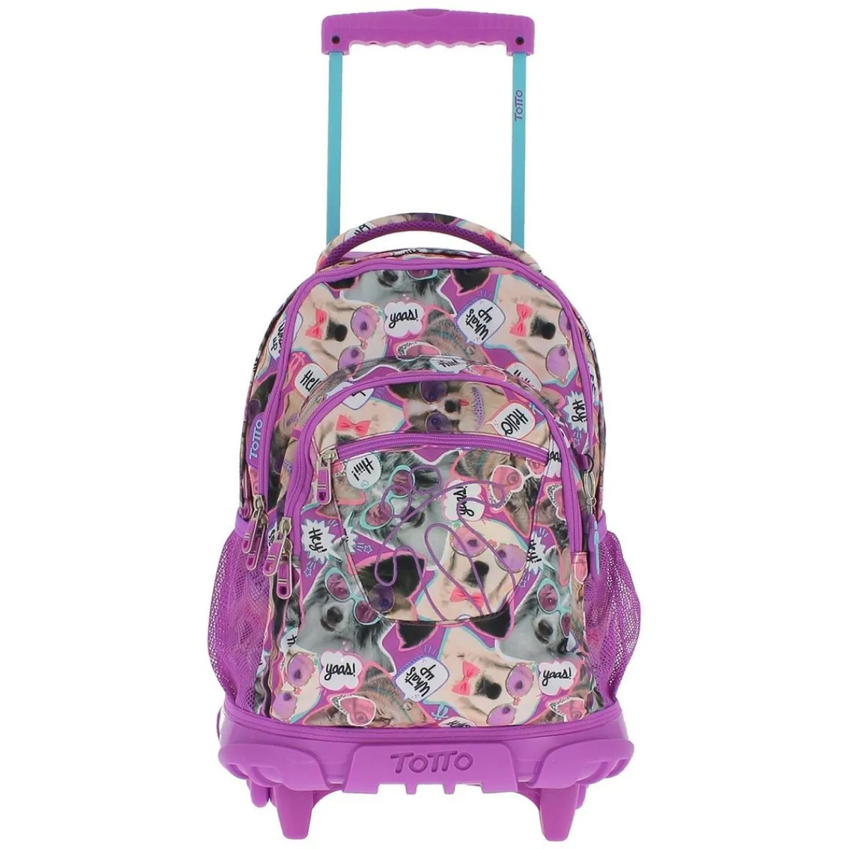 Totto – Mochila escolar con ruedas Renglones – Perritos, una mochila escolar pensada para cuidar la espalda del niño llevando el peso cómodamente con el carro.