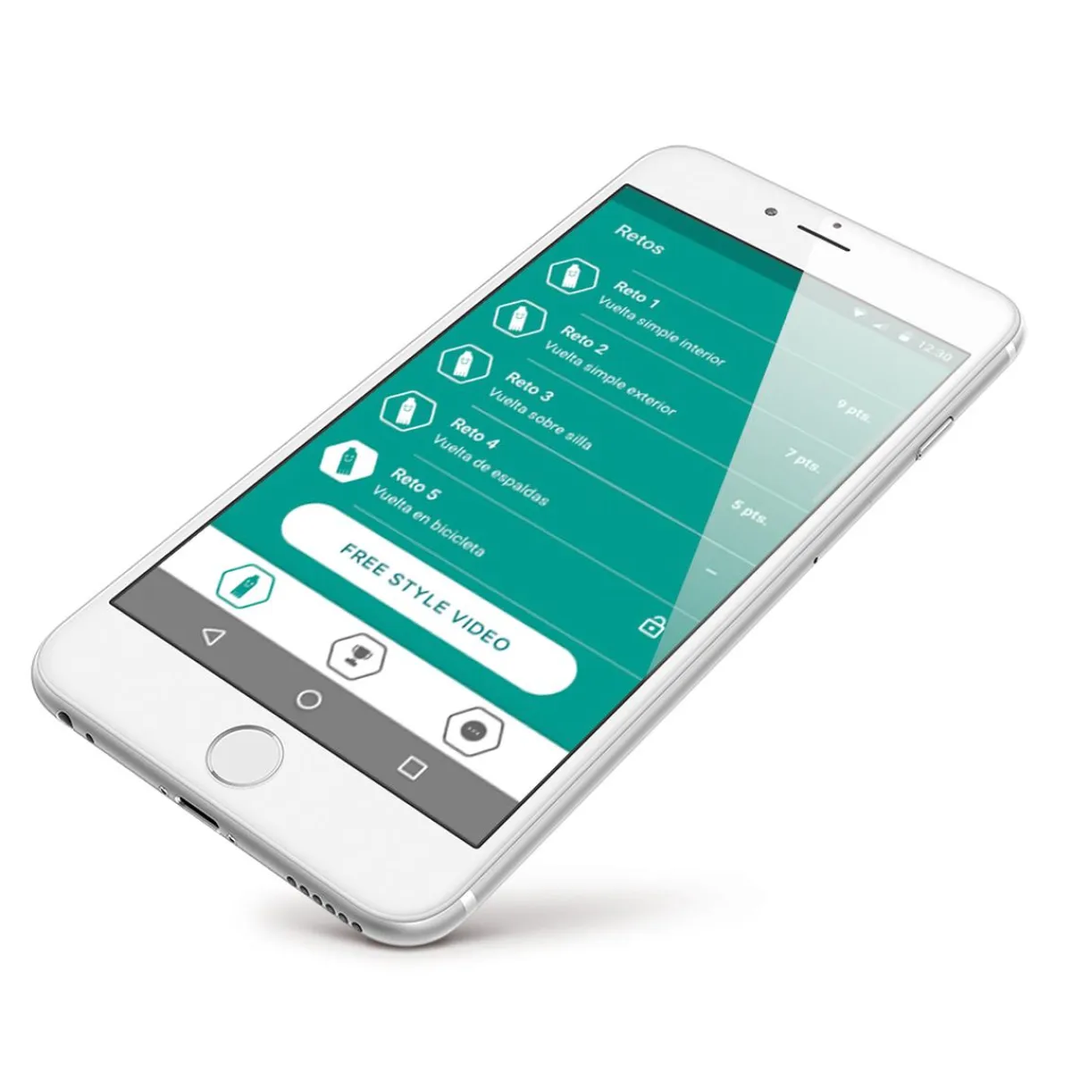 Bottle Flip Challenge (varios colores), un set que incluye 1 botella de plástico, 1 base fluorescente, stickers y 1 código para la App. Personaliza tu botella y con la App, entra en la comunidad Bottle Flip Challenge para seguir nuevos retos. Bottle Flip Challenge, ¡el reto de la botella! Edad recomendad: +4 años.
