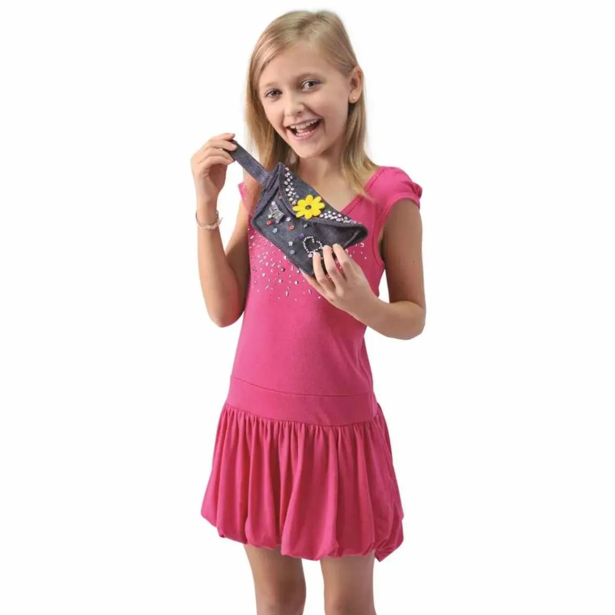 Este conjunto creativo te permitirá diseñar un bolso vaquero. Podrás personalizarlo para hacerlo único con los accesorios incluidos.