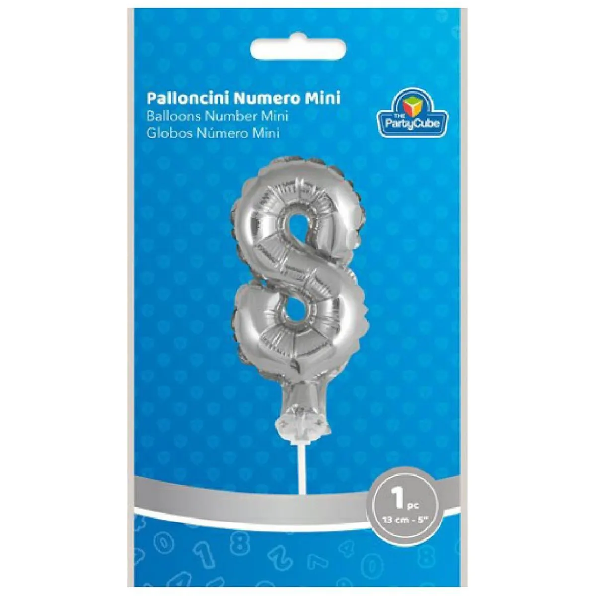 Globo aluminio plateado número 8, un globo de cumpleaños.