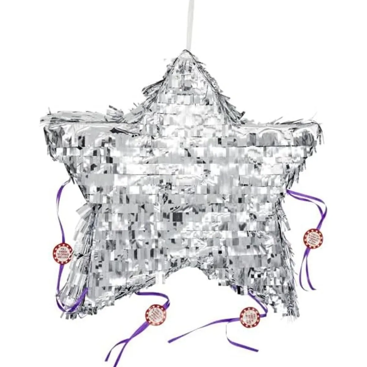 Imagina una lluvia de sorpresas brillando en tu celebración con la «Piñata Fiesta Celestial», una estrella plateada diseñada para hacer brillar tus fiestas. Esta fabulosa piñata de Amscan se convierte en el centro de atención, invitando a todos a participar en un juego clásico lleno de emoción y risas.