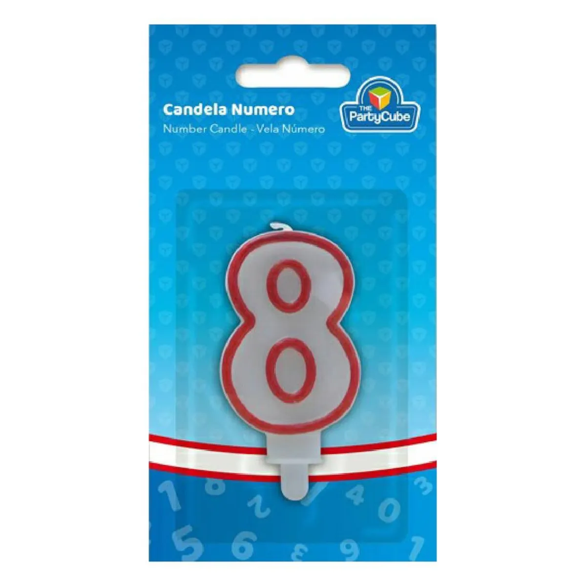 Esta vela blanca con el borde rojo mide 6,5 cm.