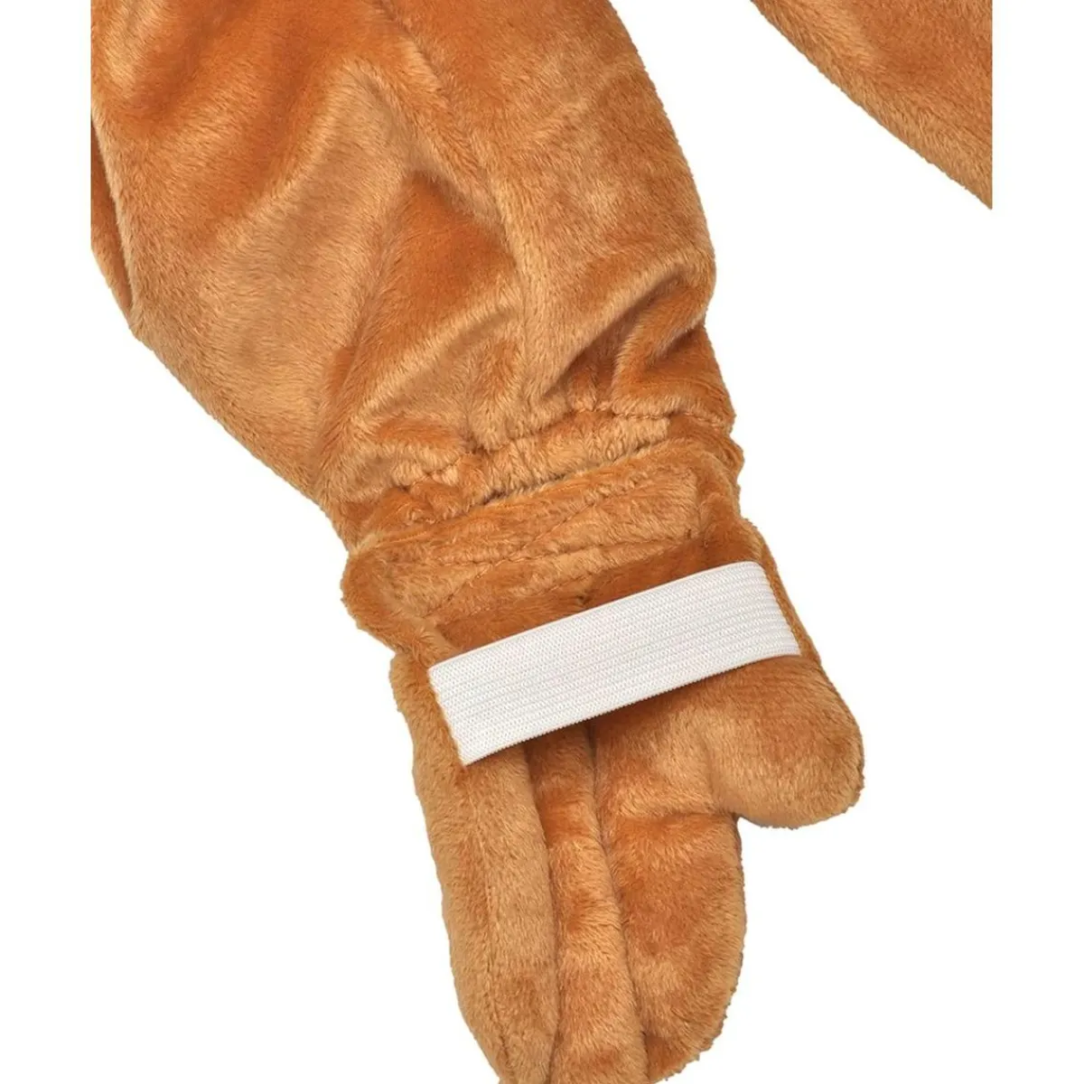 El disfraz se compone de una combinación en tonos de marrón claro adornada con manchitas negras, que le otorgan ese look inconfundible del personaje. La tela es suave y cómoda, asegurando que el pequeño detective pueda moverse con total libertad. Además, viene con unas graciosas patitas de perro en las extremidades de las mangas y los pantalones, contando todas ellas con un elástico blanco para mantenerlas en su lugar sin dificultades.