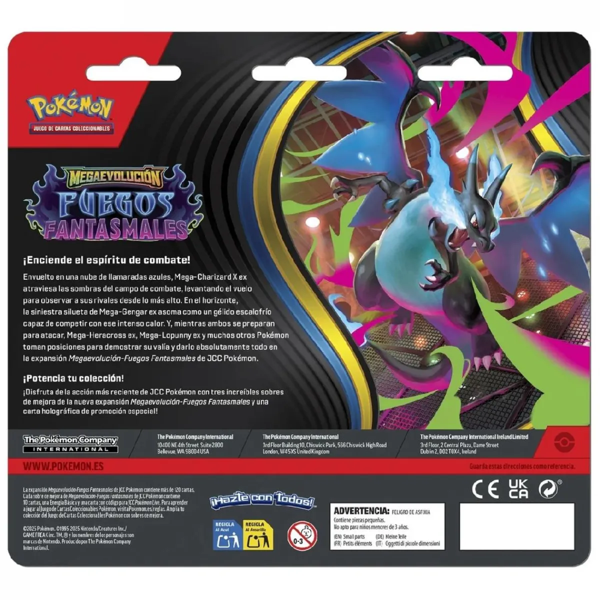 Pokémon – Megaevolución Fuegos Fantasmales – Blíster 3 sobres de cartas en español (Varios modelos)