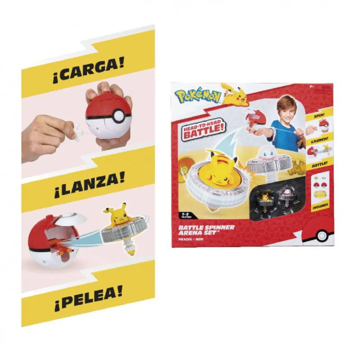 - Incluye Pokéball lanzadora, dos Battle Spinners (uno de Pikachu y otro con la figura exclusiva de Mew) y el estadio de batalla.