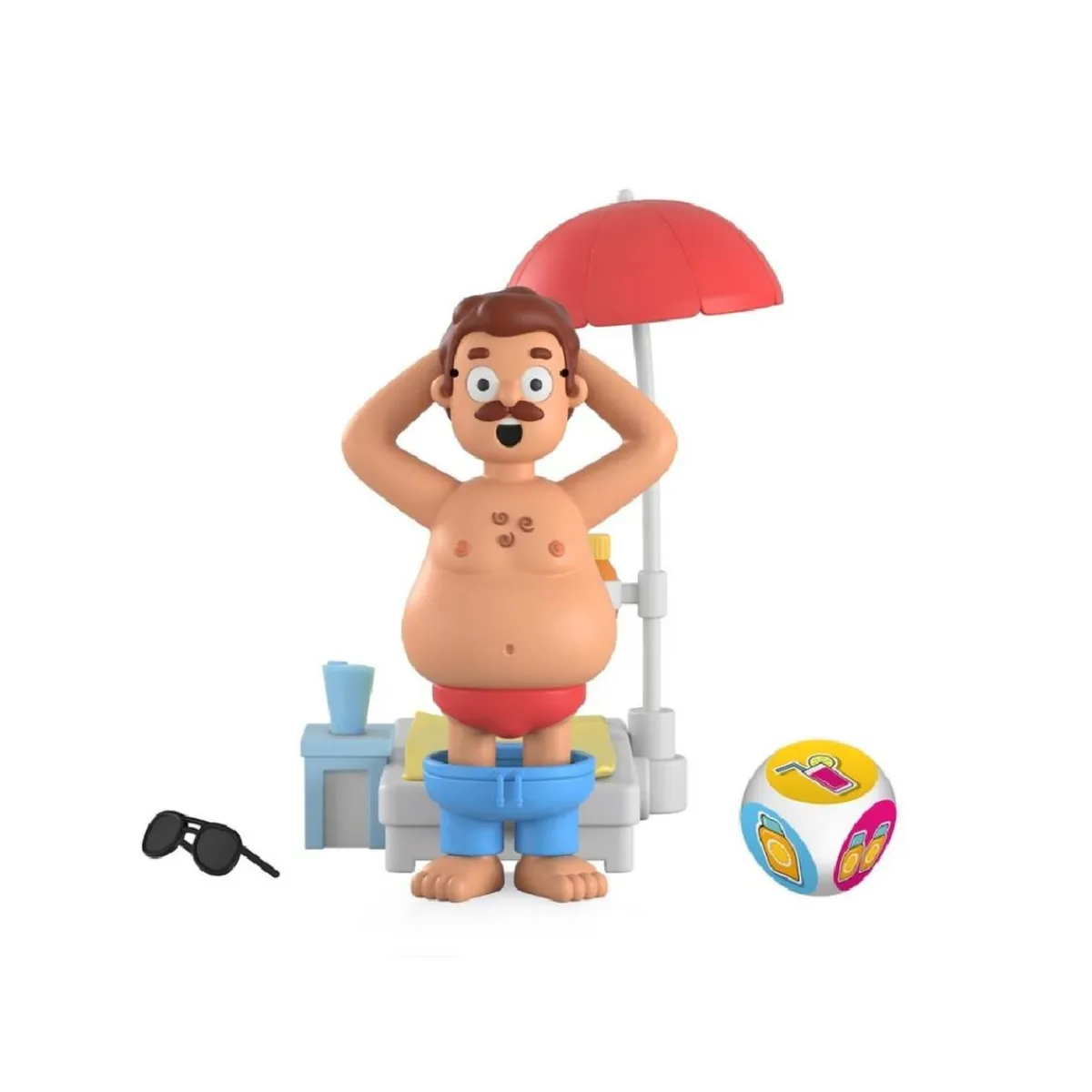 Pero mírale, ¡¡está poniéndose cada vez más rojo!! ¡No le dejes demasiado tiempo bajo el sol sin crema solar o se pondrá muy rojo, saltará de la tumbona ¡y se le caerá el bañador!