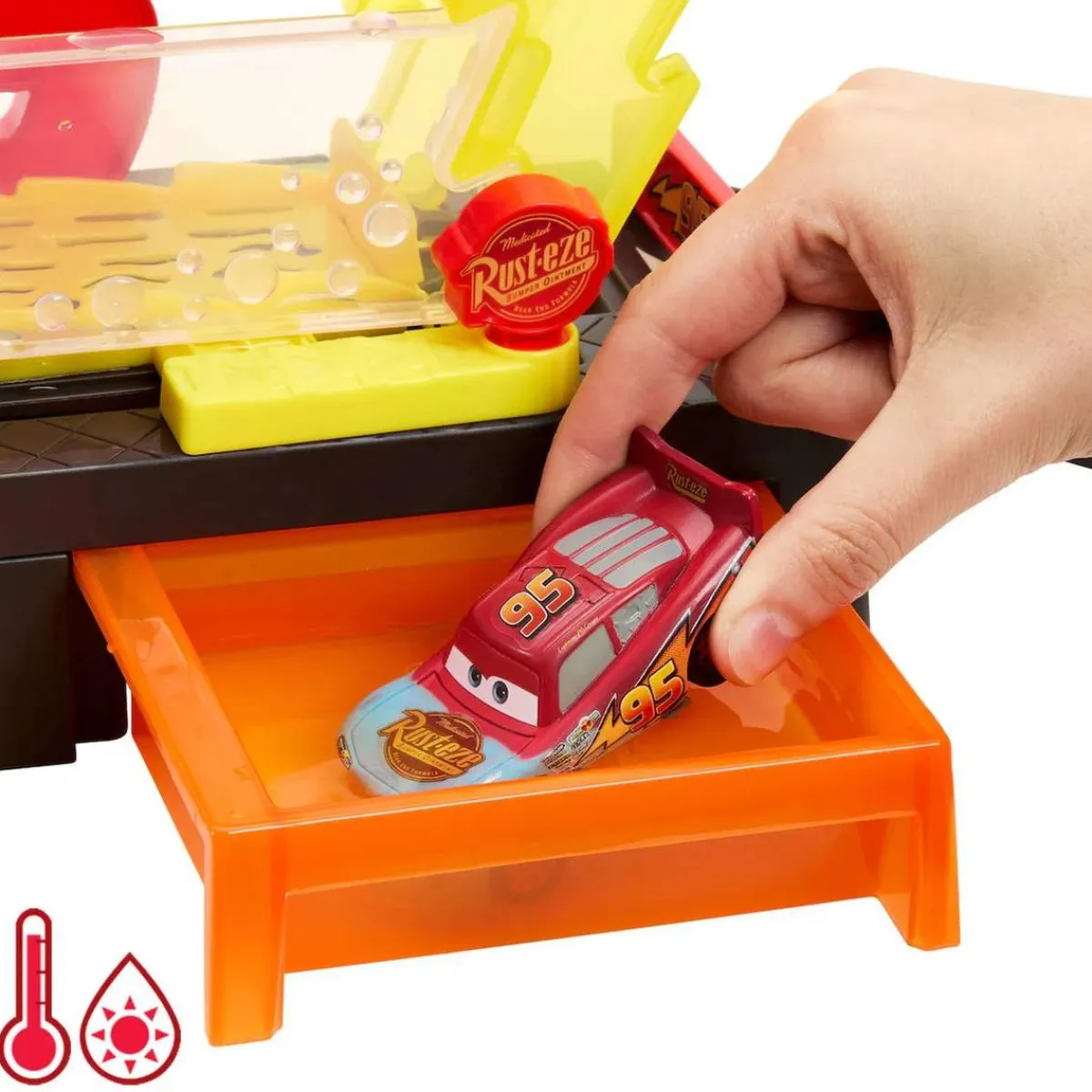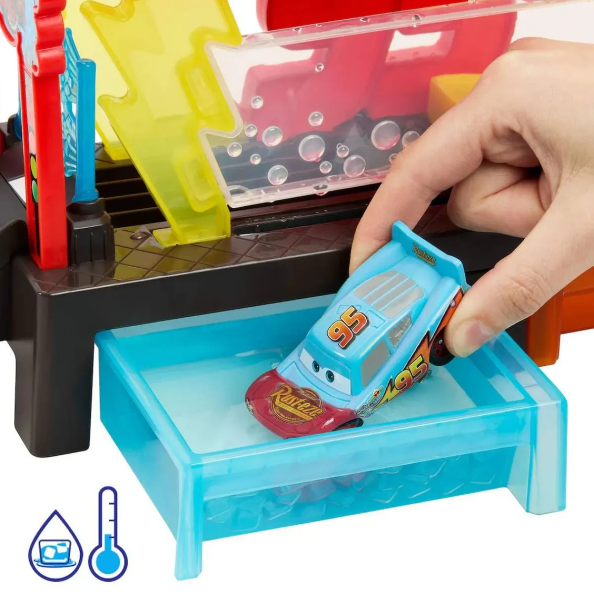- Cambio de color interactivo: Sumerge el coche Rayo McQueen en agua tibia para revelar un nuevo diseño, y en agua helada para restaurarlo a su aspecto original. ¡Es como un lavado de autos mágico!