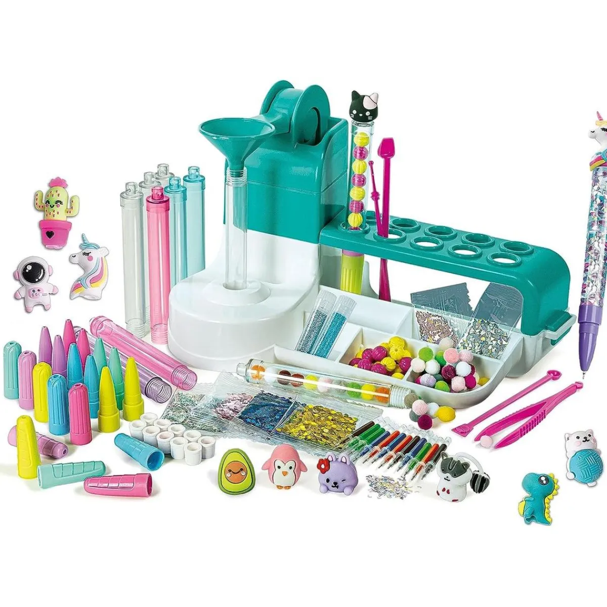 Este es un taller de los bolígrafos diseñado con un concepto innovador que va más allá de la simple actividad de personalizar bolígrafos. Con este set, tus hijos podrán diseñar y crear sus propios bolígrafos de colores con una gran variedad de accesorios y decoraciones. ¡Es una forma magnífica para ellos de expresar su imaginación y creatividad!