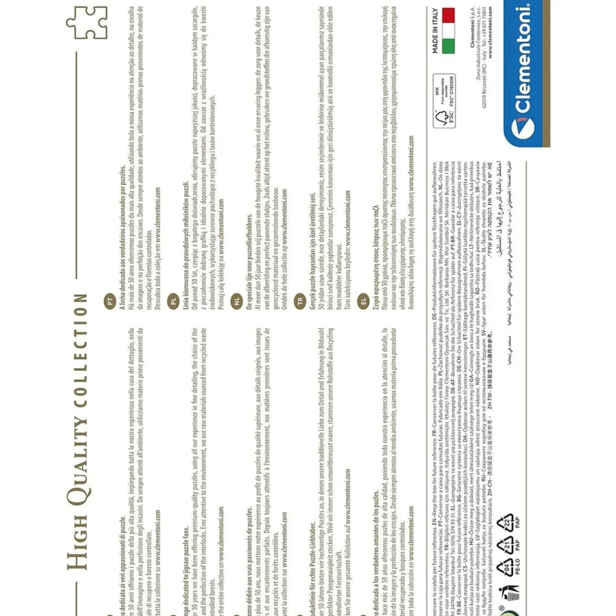 Clementoni se preocupa por el medio ambiente, por eso opta por un amplio uso de materiales reciclados y evita los componentes contaminantes. Así, no sólo te sumergirás en la diversión y el reto de montar este puzzle, sino que también estarás contribuyendo a la protección del planeta.