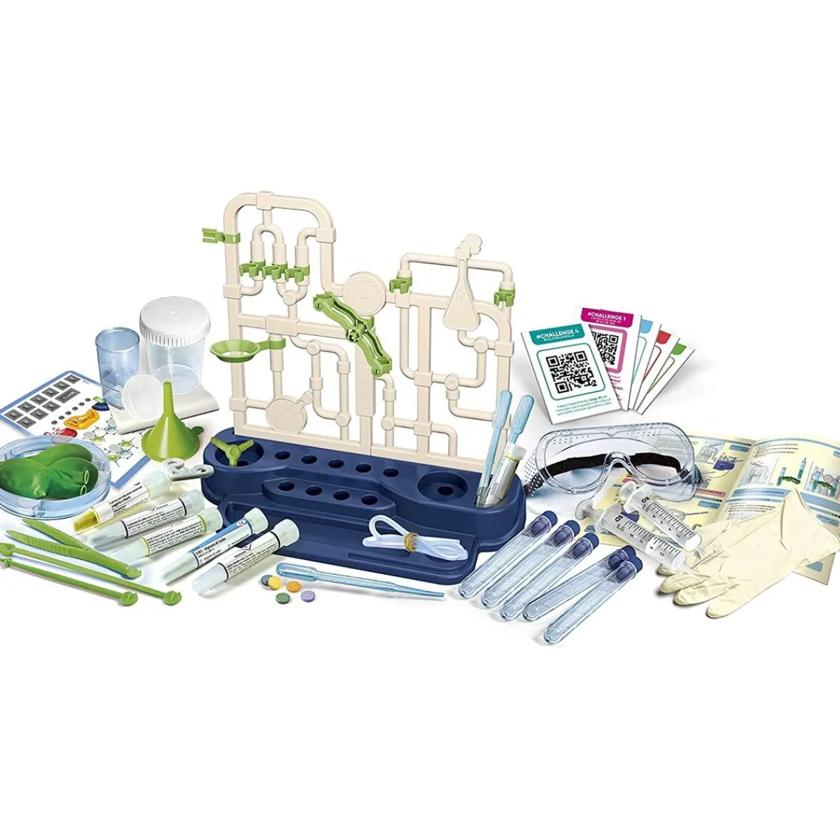- Todas las herramientas de laboratorio de un verdadero científico para apasionarse a la química.