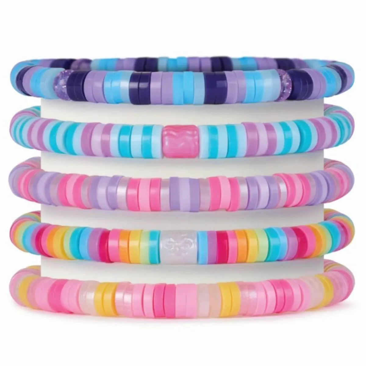 El kit incluye más de 1.200 cuentas Heishi de colores, 10 cuentas especiales, un bolígrafo de cuentas fácil de usar, una guía de medición para ajustar el tamaño de la muñeca y un taller de pulseras con cierre automático. Gracias a su diseño innovador, las pulseras se ensamblan sin necesidad de nudos ni ganchos, simplemente apilando, enhebrando y presionando el botón para cerrarlas mágicamente.
