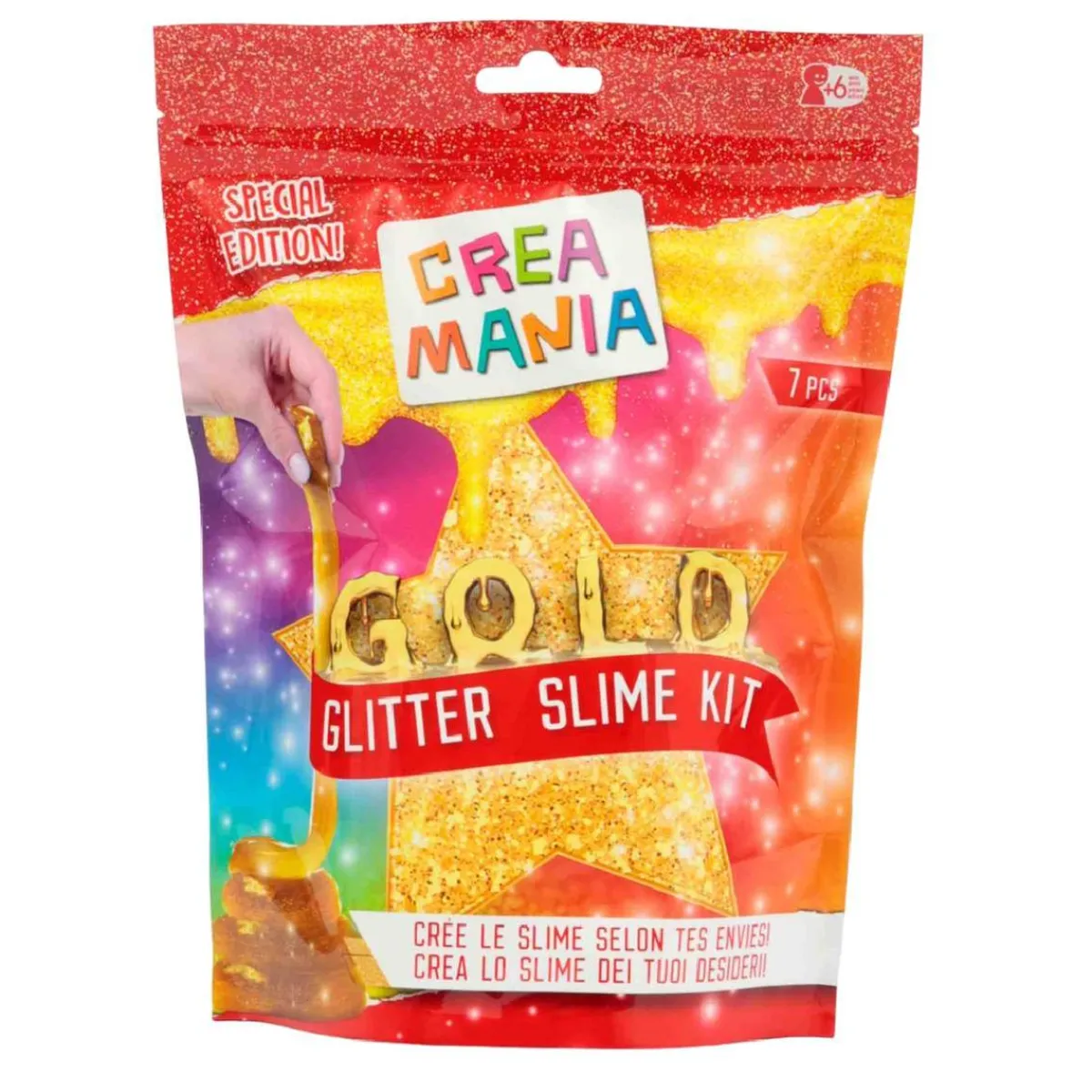 ¡Prepárate para crear un slime completamente dorado, con pigmento, purpurina y copos DORADOS! Dentro del kit encontrará todo lo que necesita para comenzar a crear.