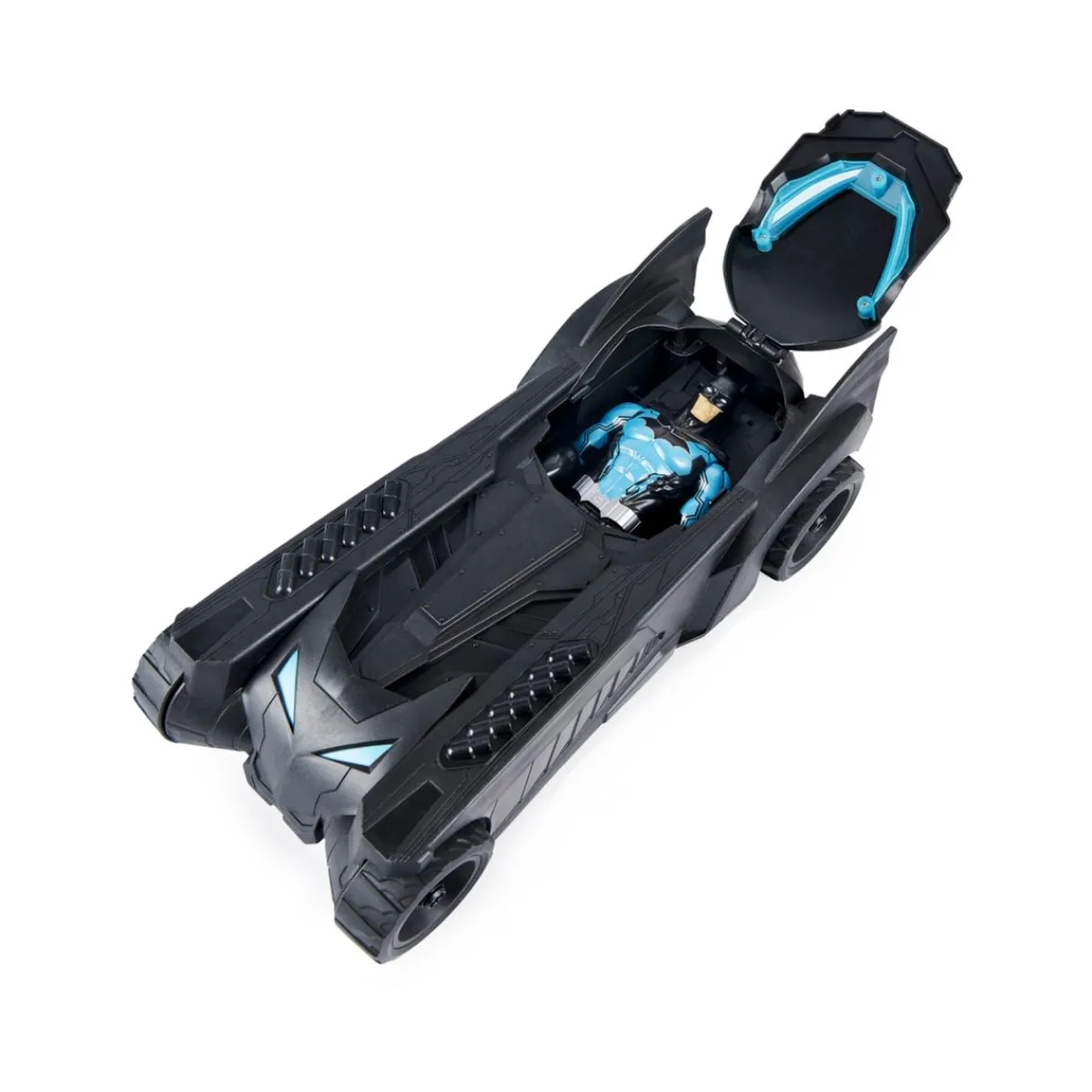 Disfruta de este pack de una figura de 30 cm de Batman junto a su mítico coche, el Batmóvil.