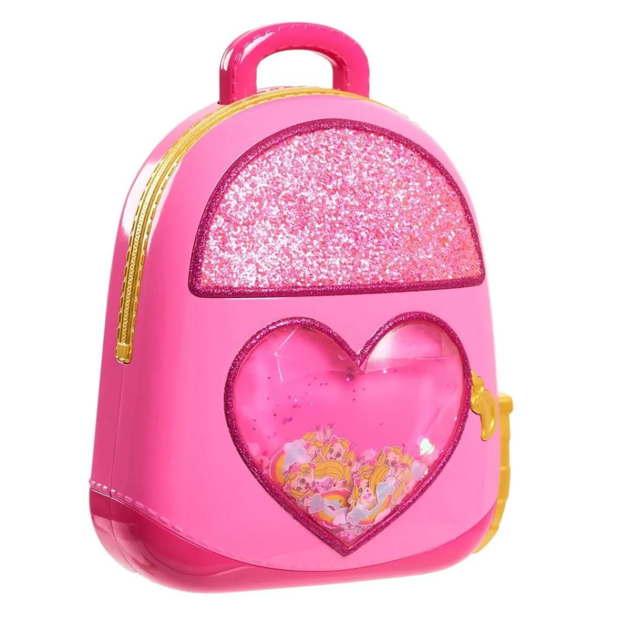 La mochila es de color rosa y brilla mucho ya que viene con purpurina que además flota.