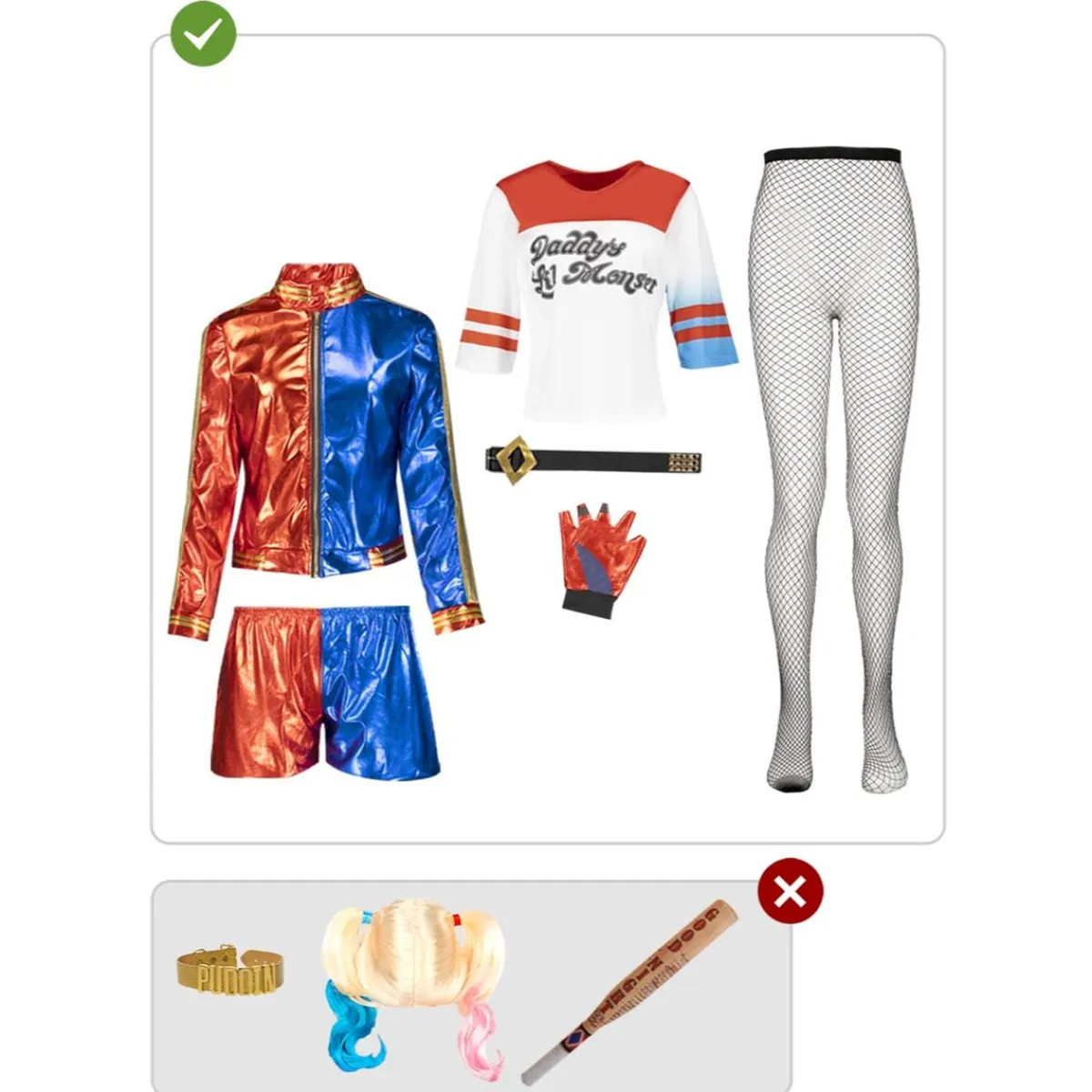 Este disfraz de Harley Quinn en talla L reproduce el estilo atrevido de la película Escuadrón Suicida. Ideal para quienes quieren destacar con un look moderno y rebelde.